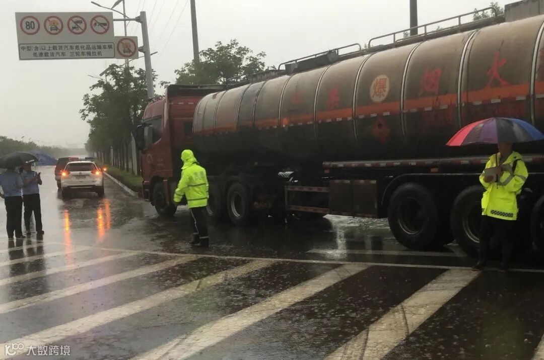 7月8日早上8时许,宁波绕城高速朝阳往保国寺方向发生三车追尾交通事故,造成其中一辆装有19吨天然气的危化品车阀门损坏,且有气体泄漏!事发后,为避免事故造成后续更严重影响,多部门联动协同妥善处置。海曙交警集士港中队根据预案,在横街高速口加强疏导,等候该危化车驶出高速,并准备将其护送至后续处置点。下午17时左右,危化品运输车顺利从横街收费站驶出,海曙交警集士港中队接到危化品运输车后,一路警车开道,路面警力沿路封锁道路,加强路面管控,最终安全顺利地将该危化品运输车护送至绿源电力有限公司。