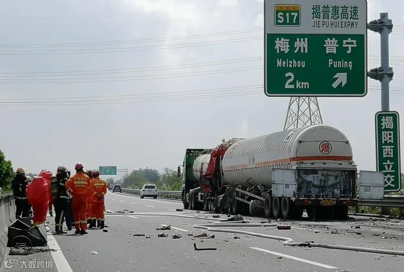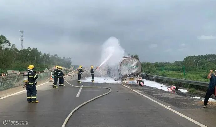 广东一危化品运输车追尾泄漏