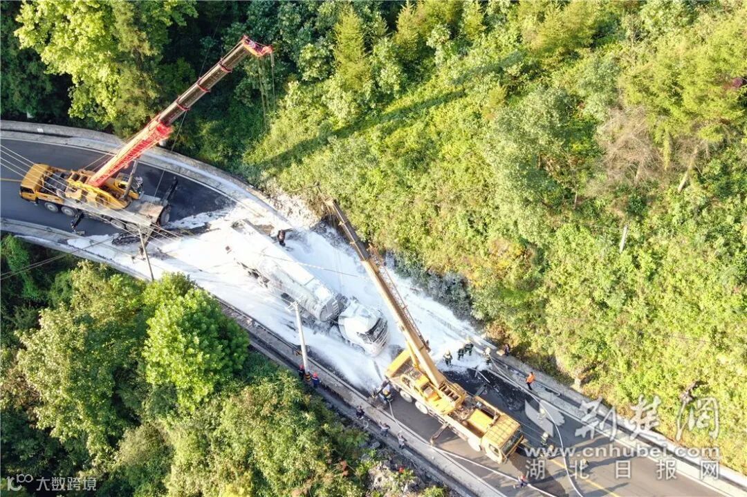 湖北恩施一载重32吨油罐车侧翻