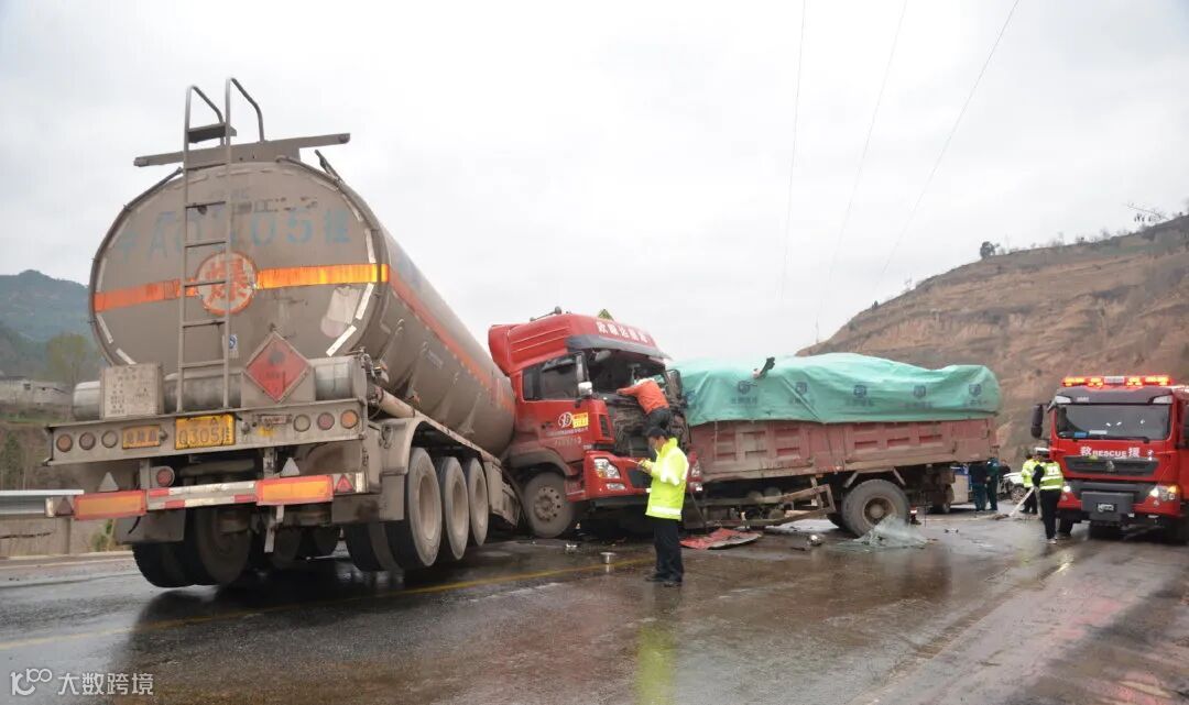甘肃陇南重型货车撞上油罐车一人被困