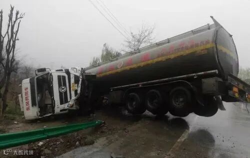 延安一油罐车刹车失灵发生交通事故