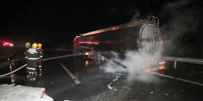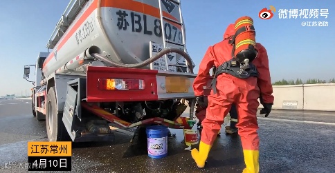 常州高速追尾致槽罐车泄漏