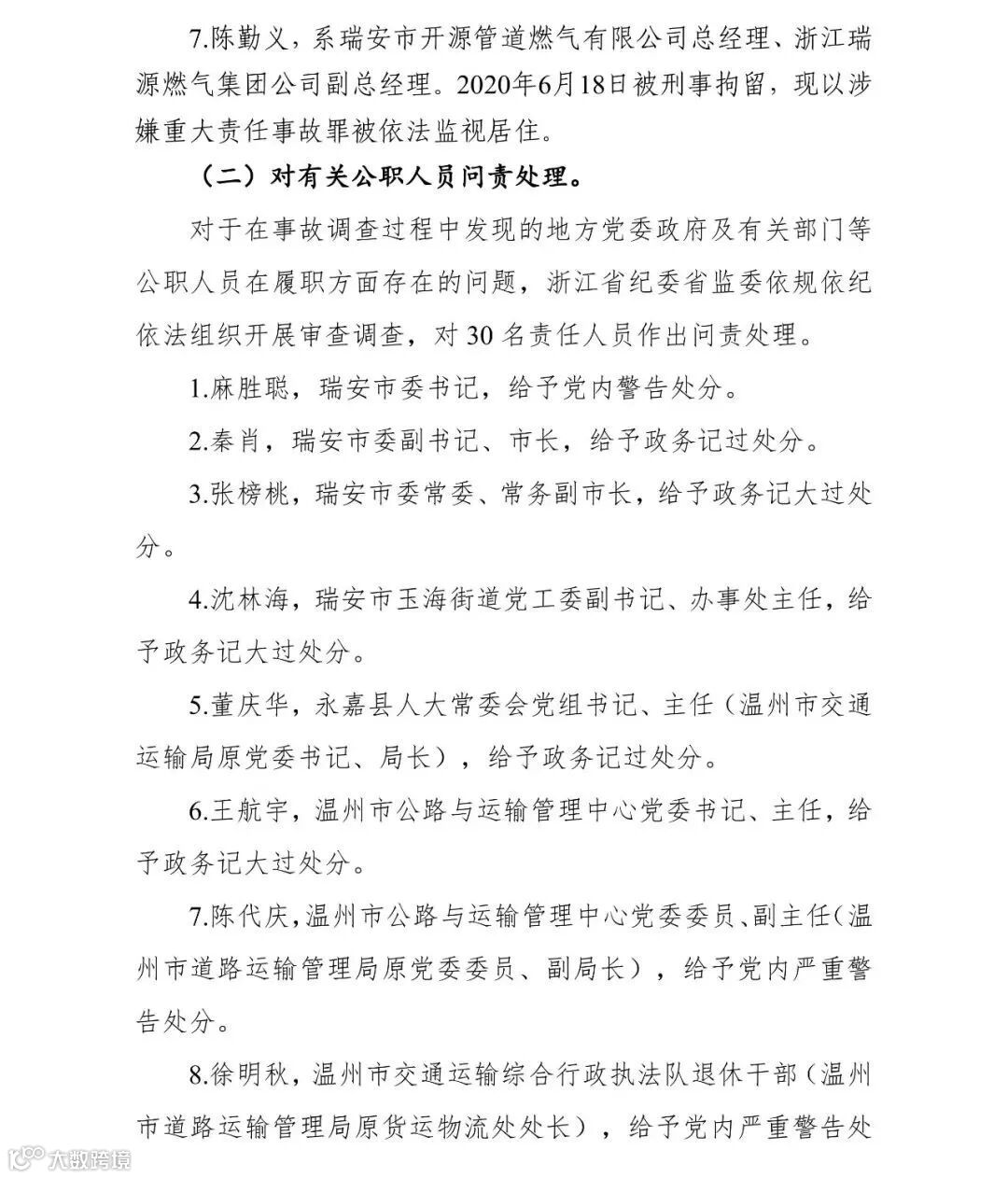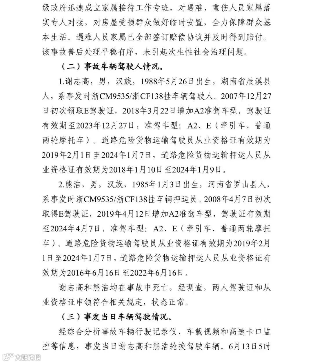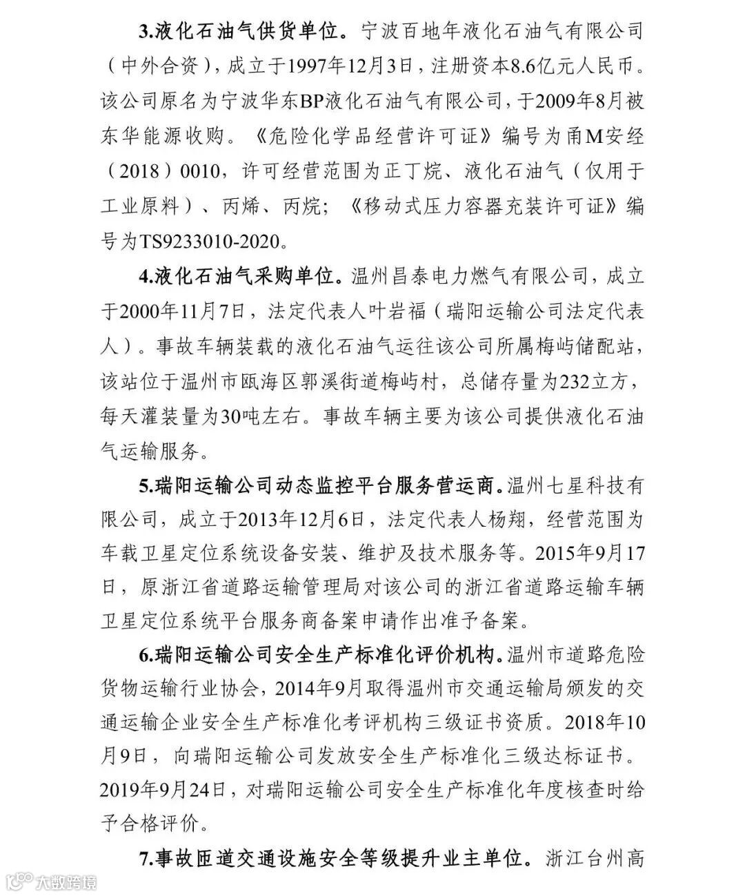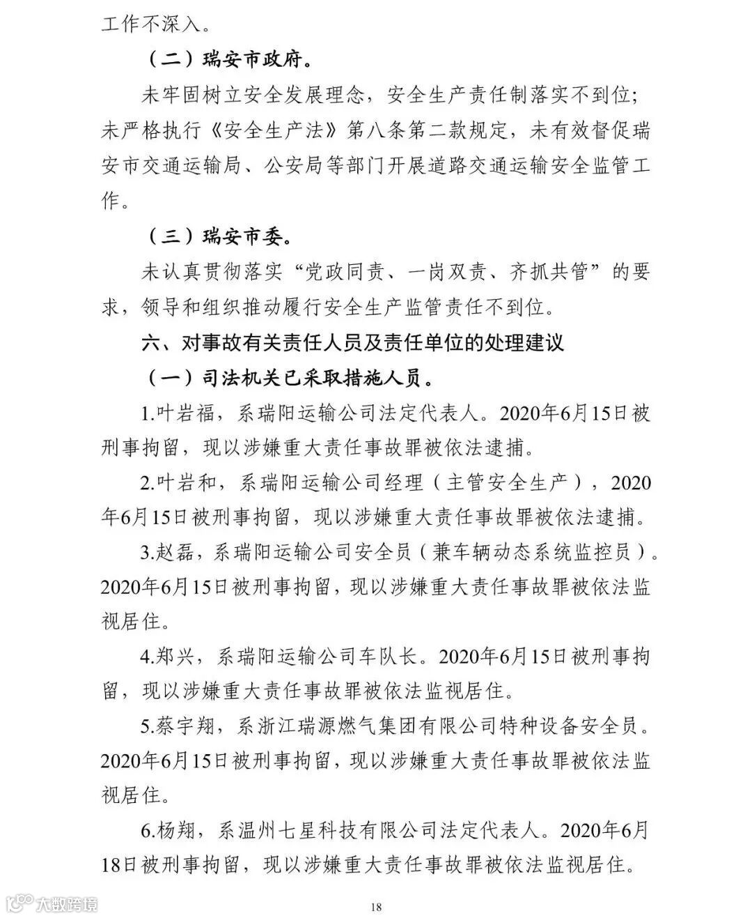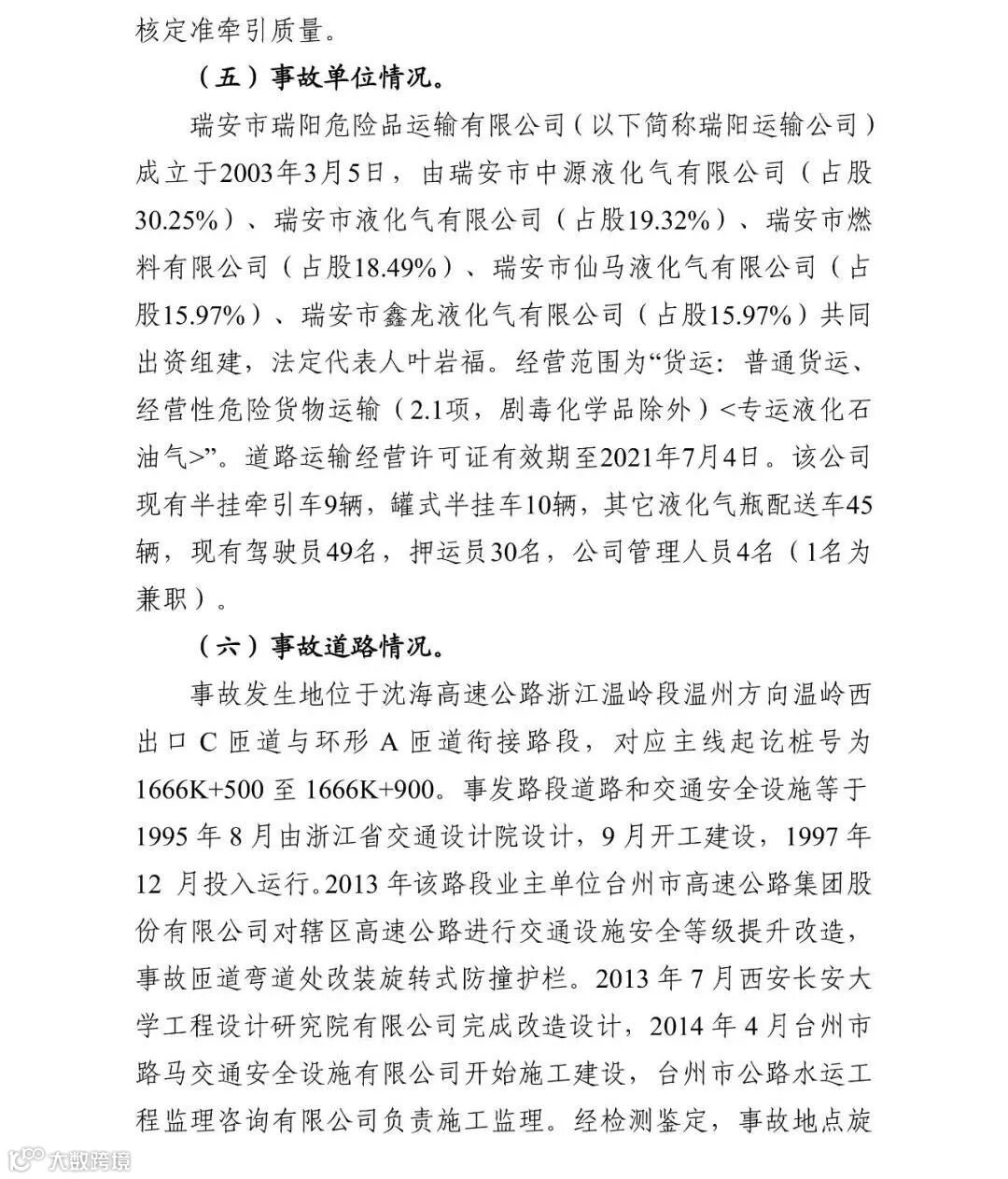 2020年12月31日,浙江省应急管理厅在官网发布了沈海高速温岭段“6·13”液化石油气运输槽罐车重大爆炸事故调查报告。