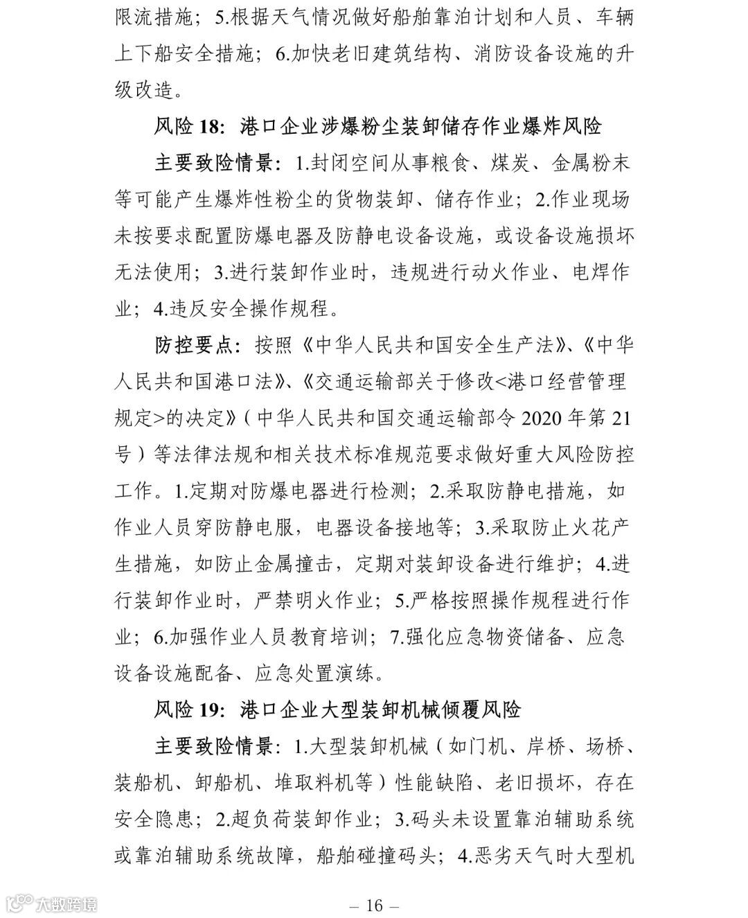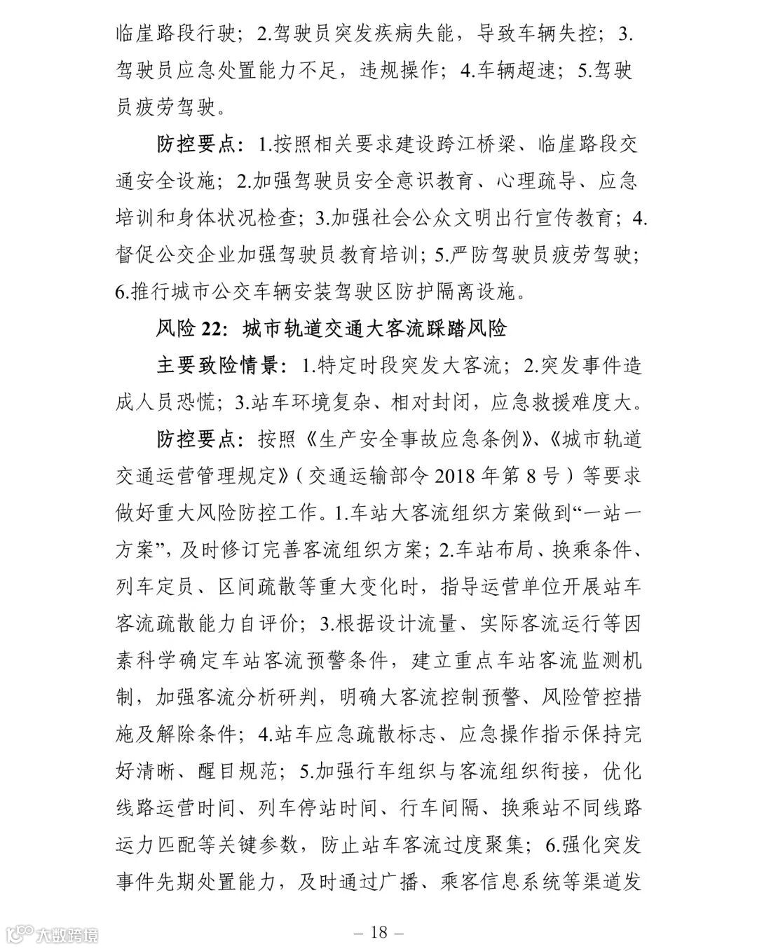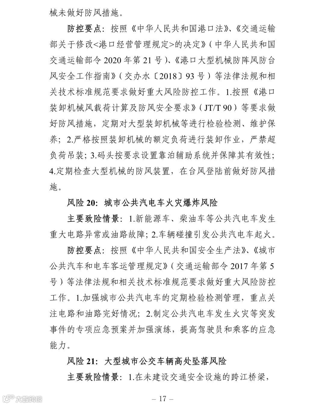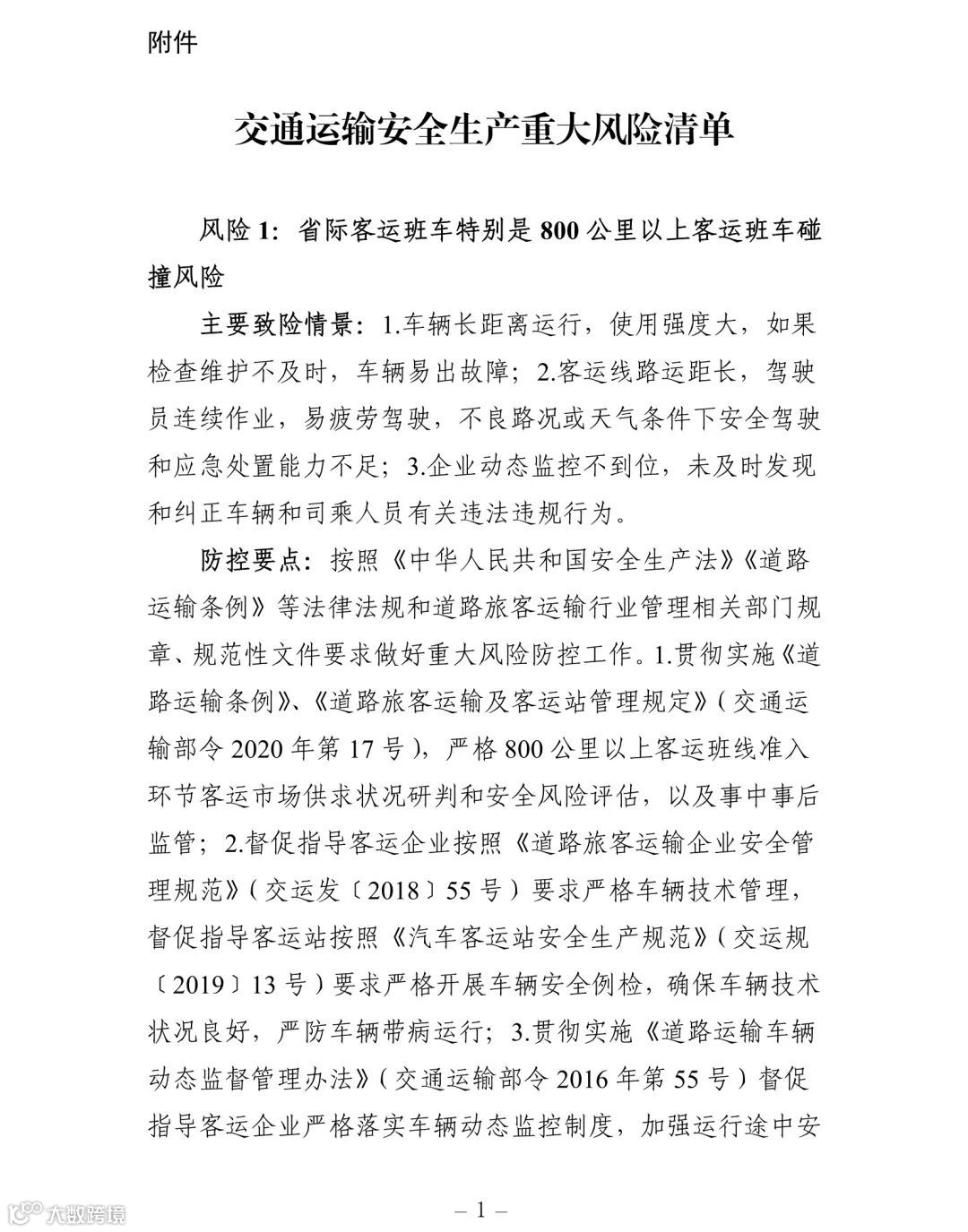 附件:交通运输安全生产重大风险清单
