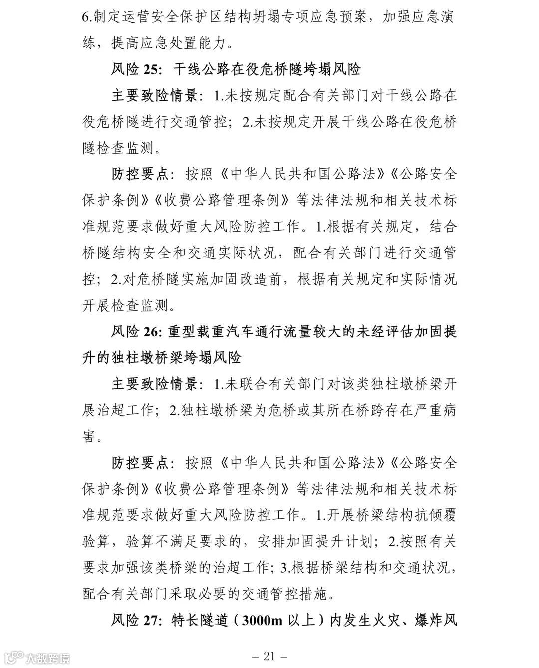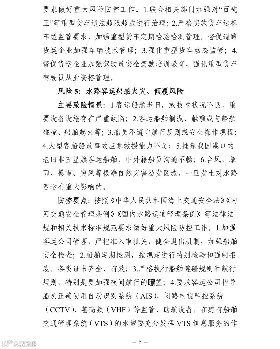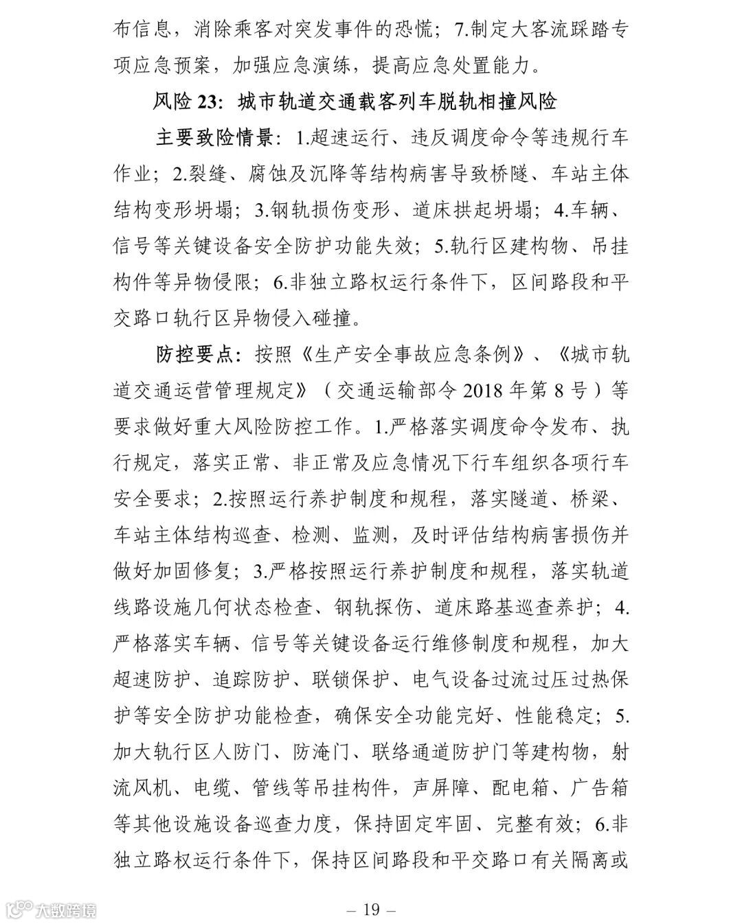 附件:交通运输安全生产重大风险清单