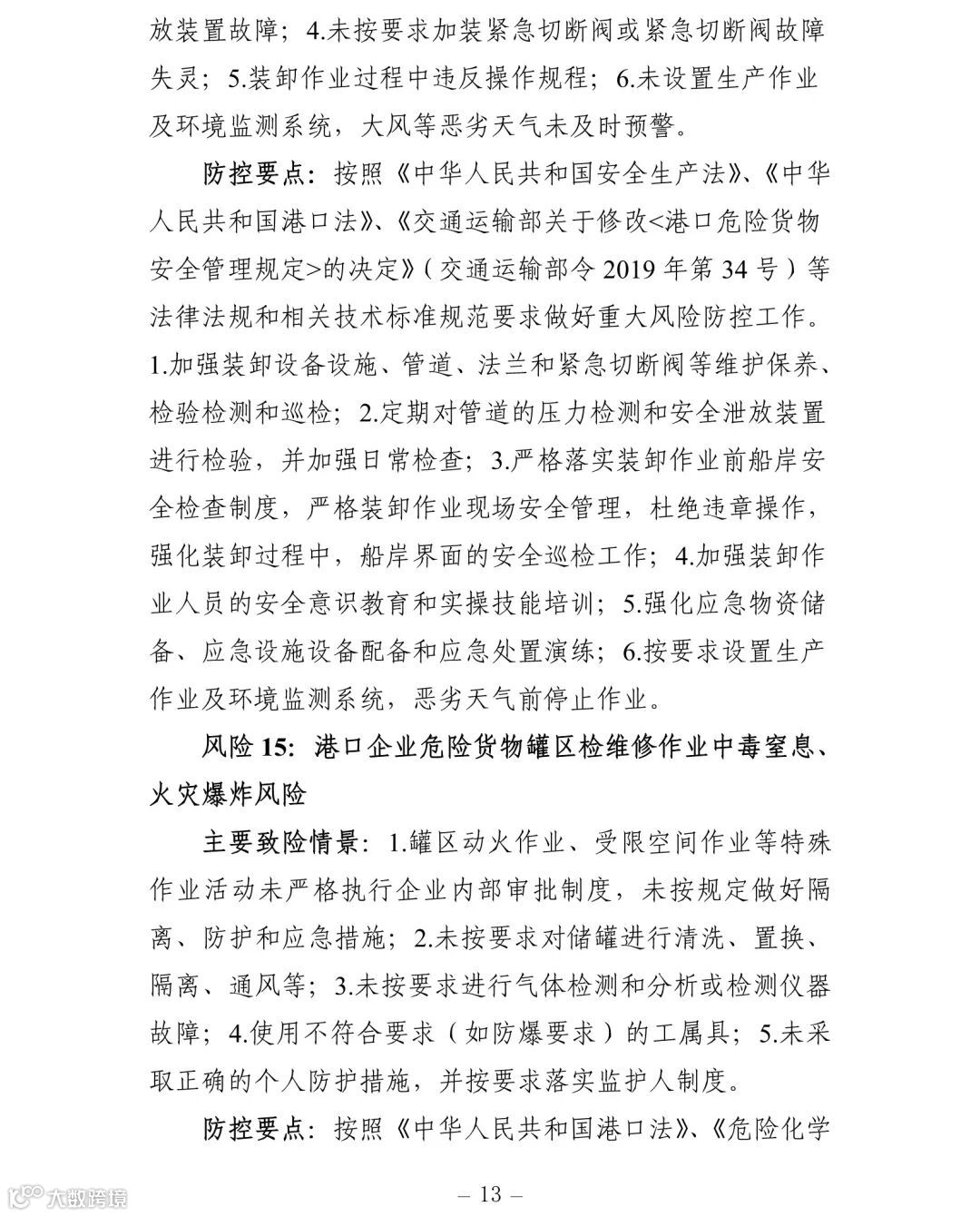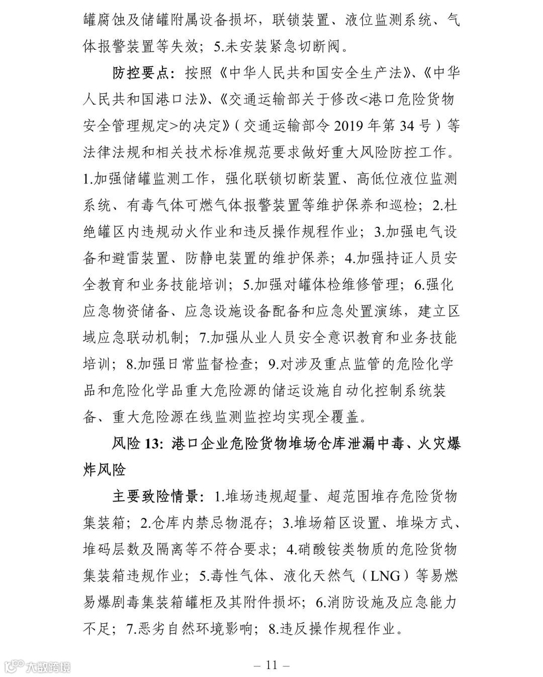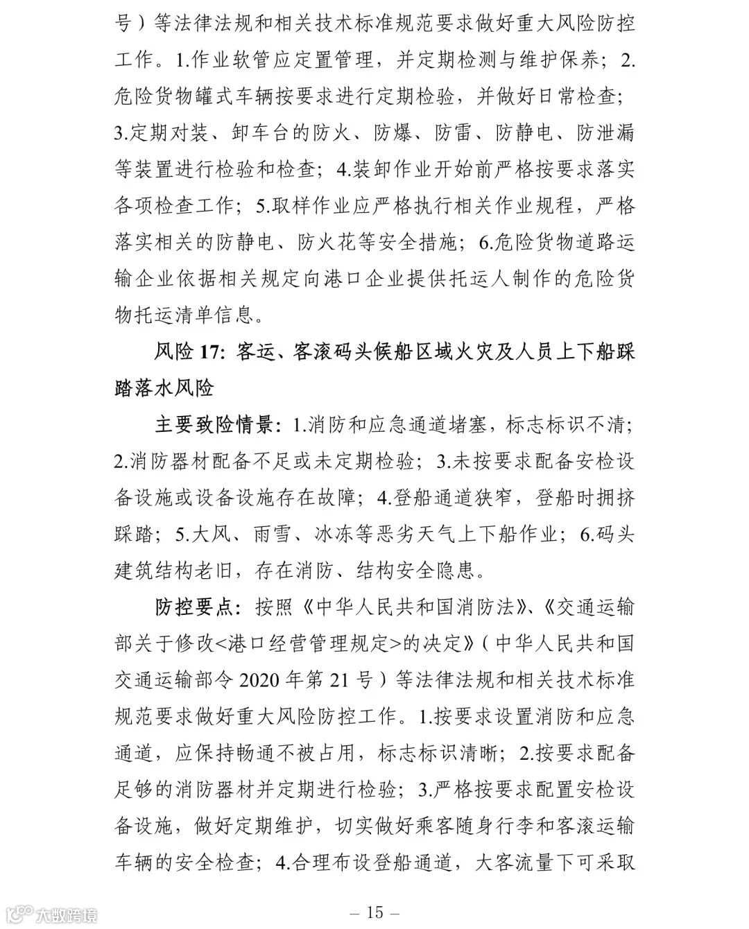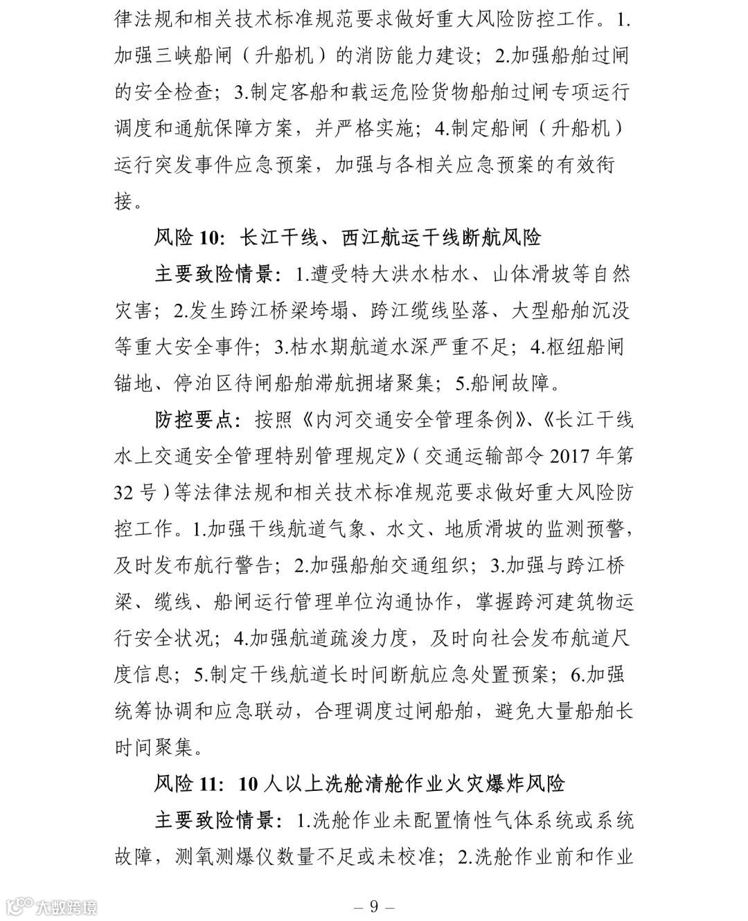 附件:交通运输安全生产重大风险清单