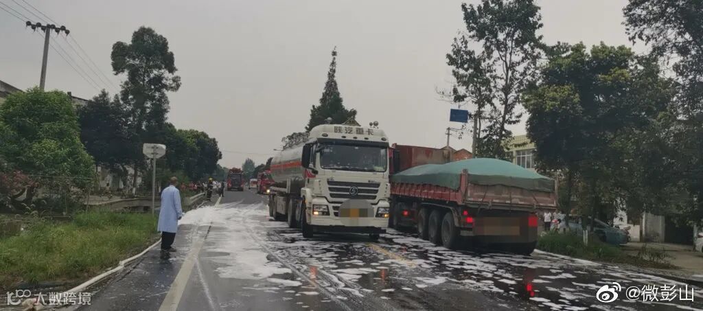 8月30日下午14时30分许,在G245国道眉山市彭山区观音街道路段,一辆满载砂石的重型牵引货车、一辆运输混凝土的搅拌车以及一辆载有20吨汽油的油罐车三车碰撞。事故发生后,公安交警、巡警、消防、应急等部门立即赶赴现场实施救援,组织专家对油罐车罐体进行评估检测,并进行降温处理。因处置及时妥当,油罐车未发生汽油泄漏,现场无人员伤亡。