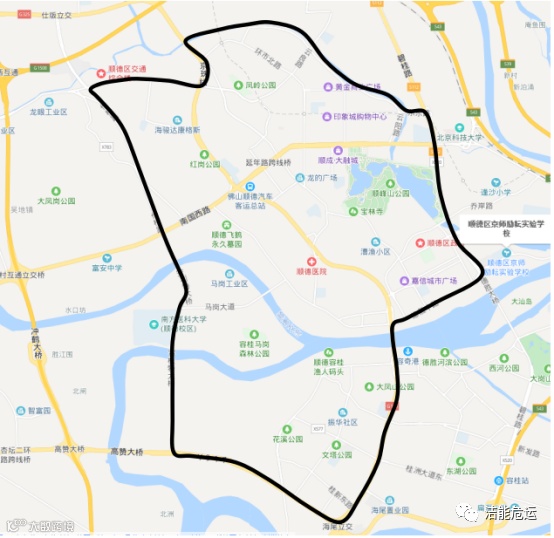 (二)顺德区限制通行范围。以碧桂路、德胜路、105国道、红旗路、伦桂路、顺翔路、凤翔路、105国道及桂畔海为边界的闭合区域(不含105国道、碧桂路、德胜路、伦桂路、红旗路)。