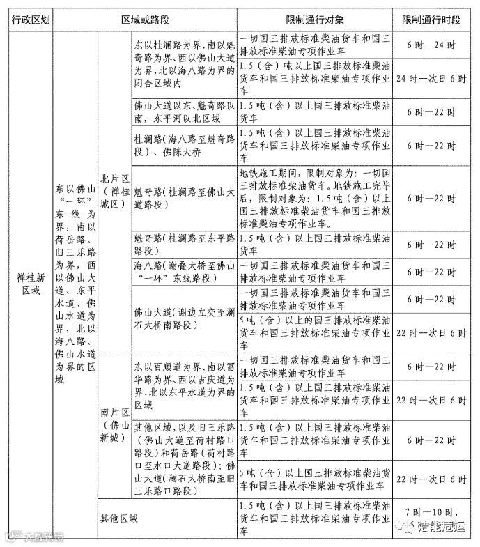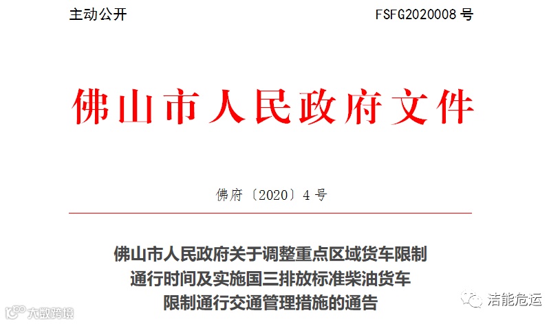(1)《佛山市人民政府关于调整重点区域货车限制通行时间及实施国三排放标准柴油货车限制通行交通管理措施的通告》(佛府〔2020〕4号)