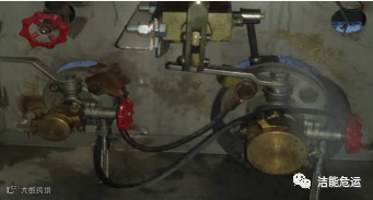 紧急切断阀,又称底阀,一般安装在罐体底部,共有两个,一个安装在卸气液相阀门与罐之间的管道上,另一个安装在卸气气相阀门与罐之间的管道上。