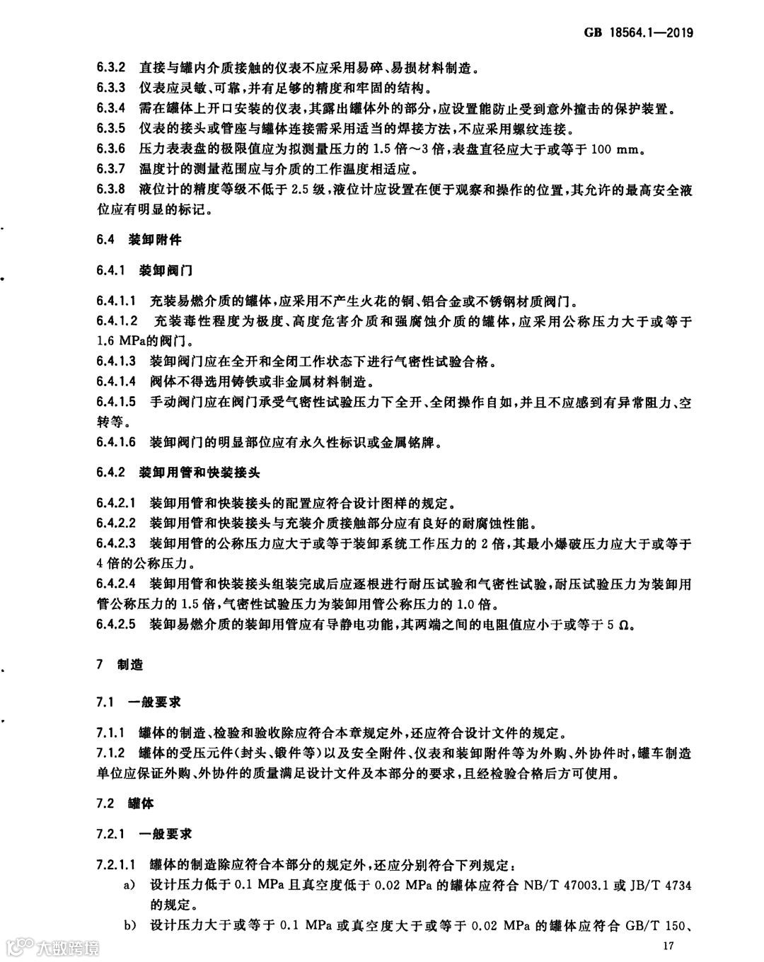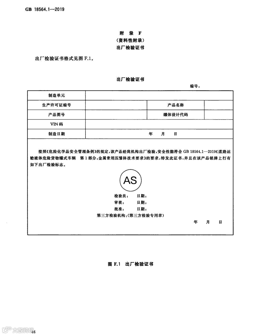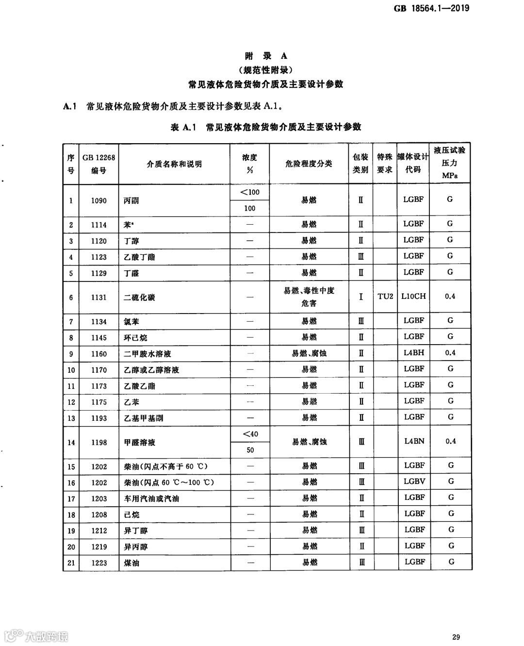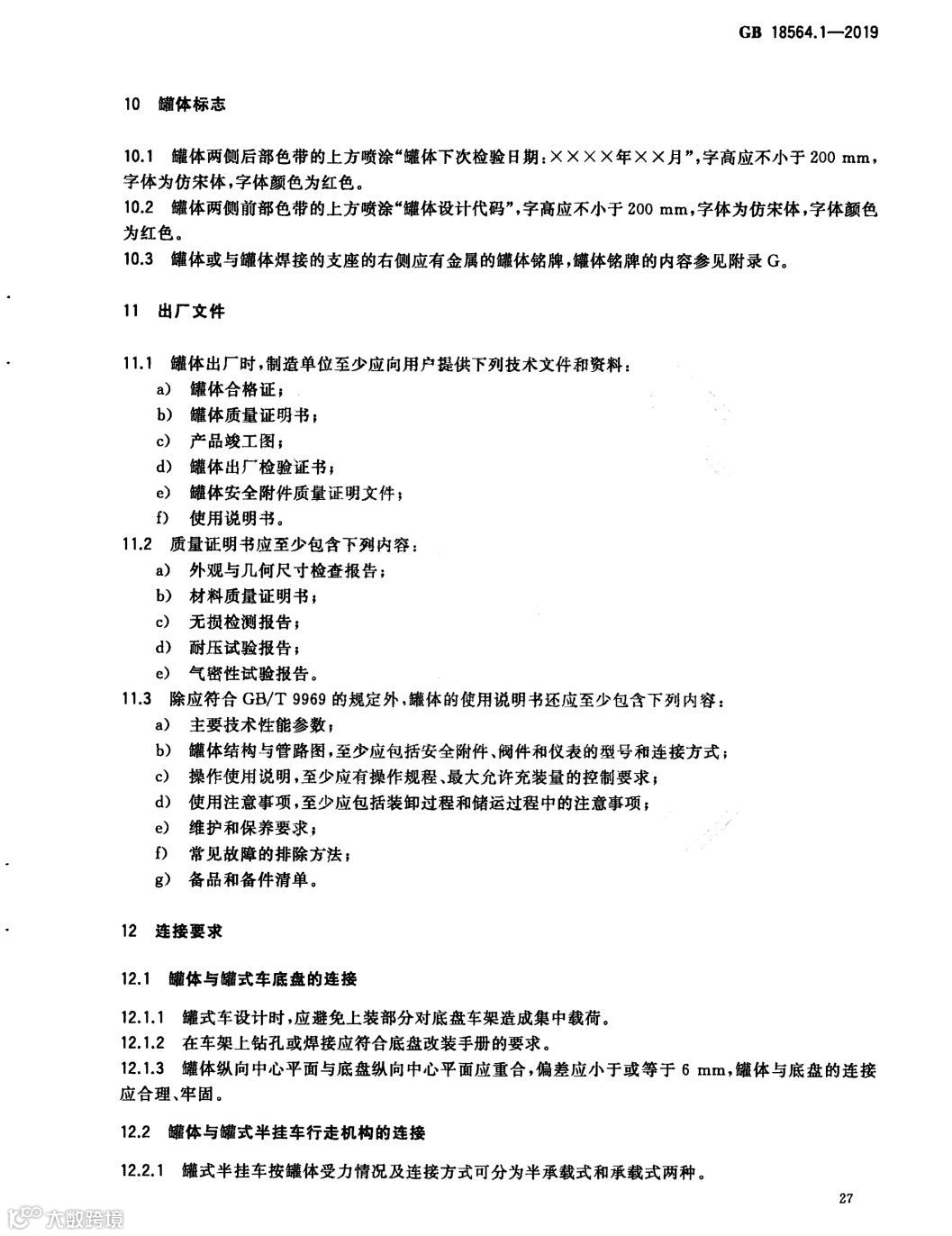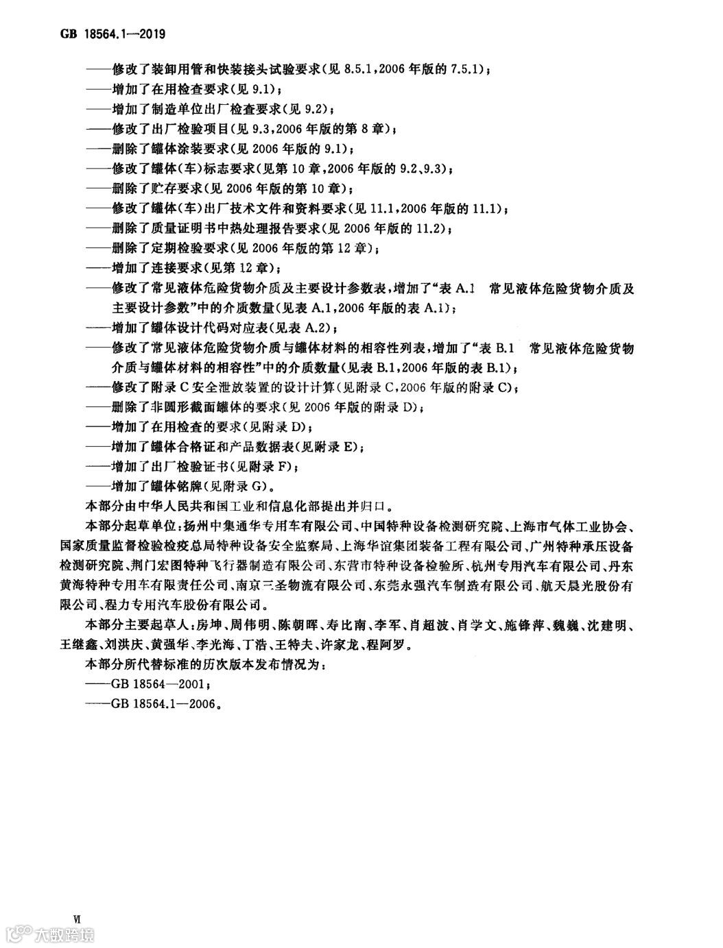 《GB18564.1-2019 道路运输液体危险货物罐式车辆第1部分:金属常压罐体技术要求》已于2019年10月14日发布,将于2020年1月1日实施。