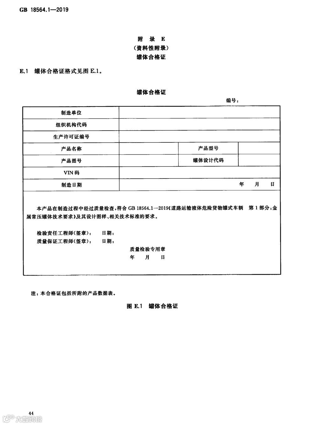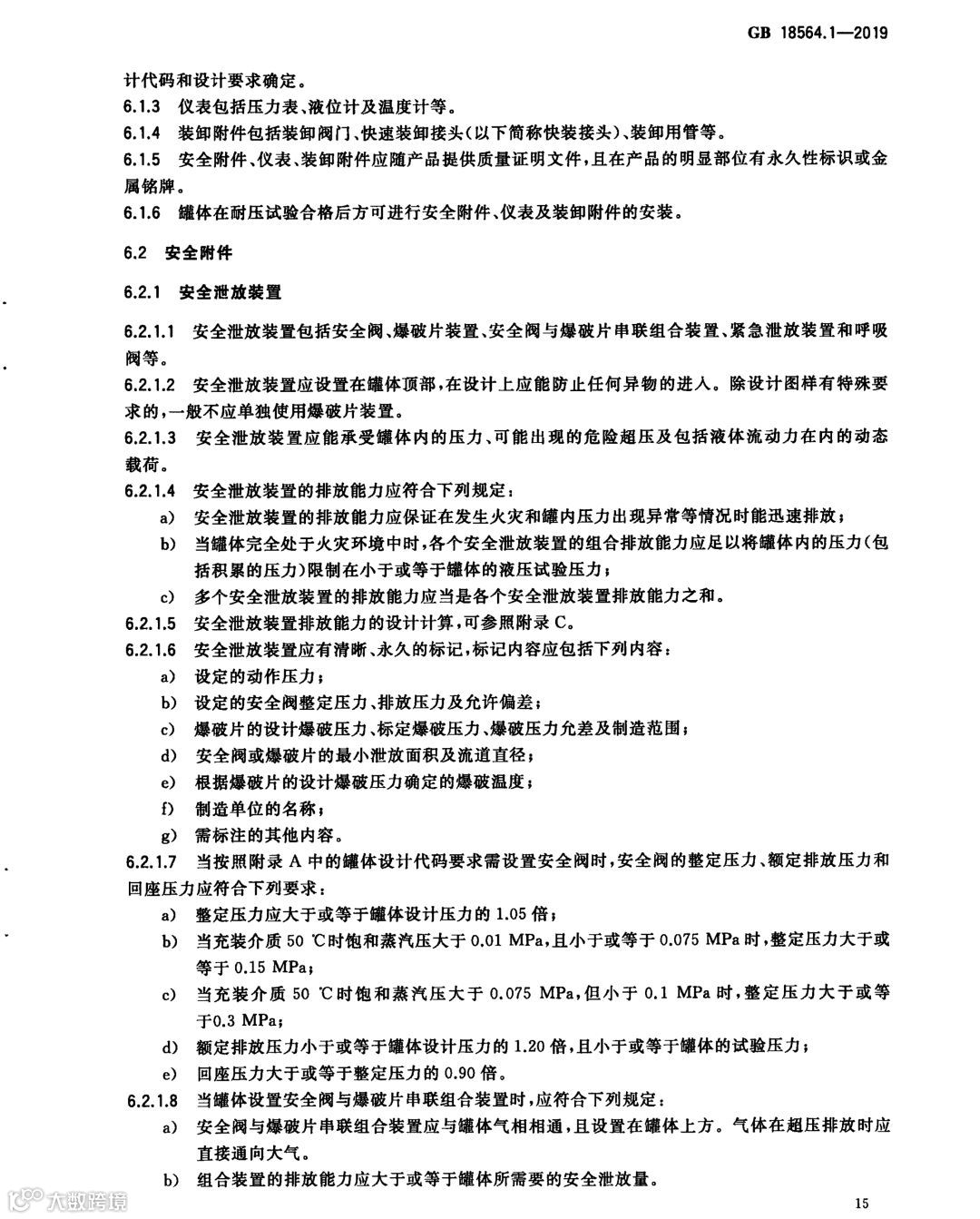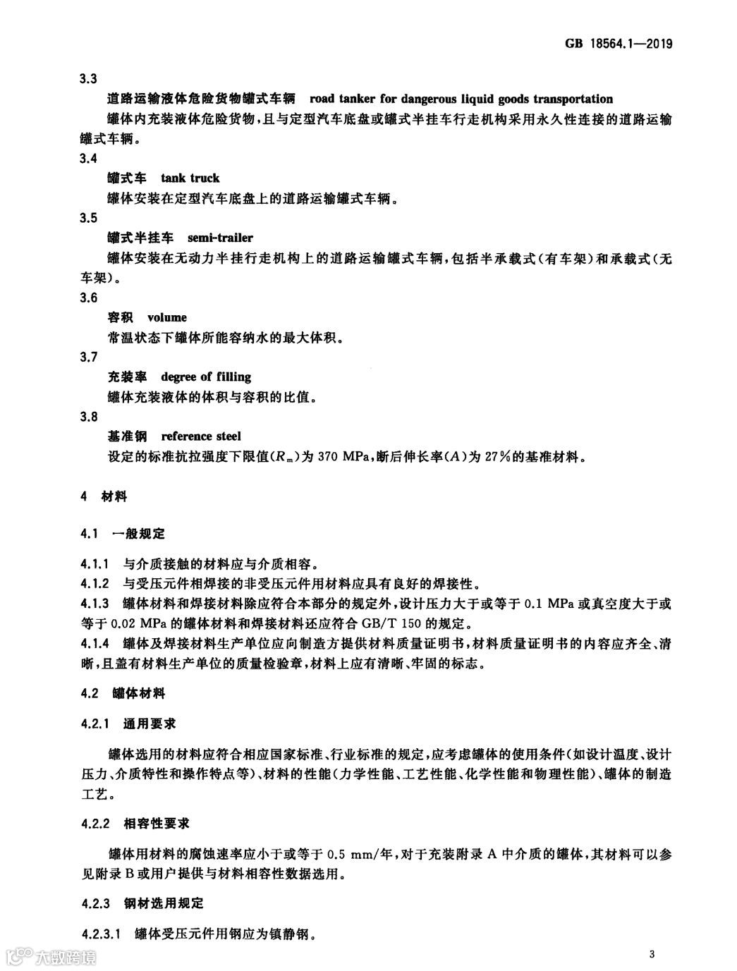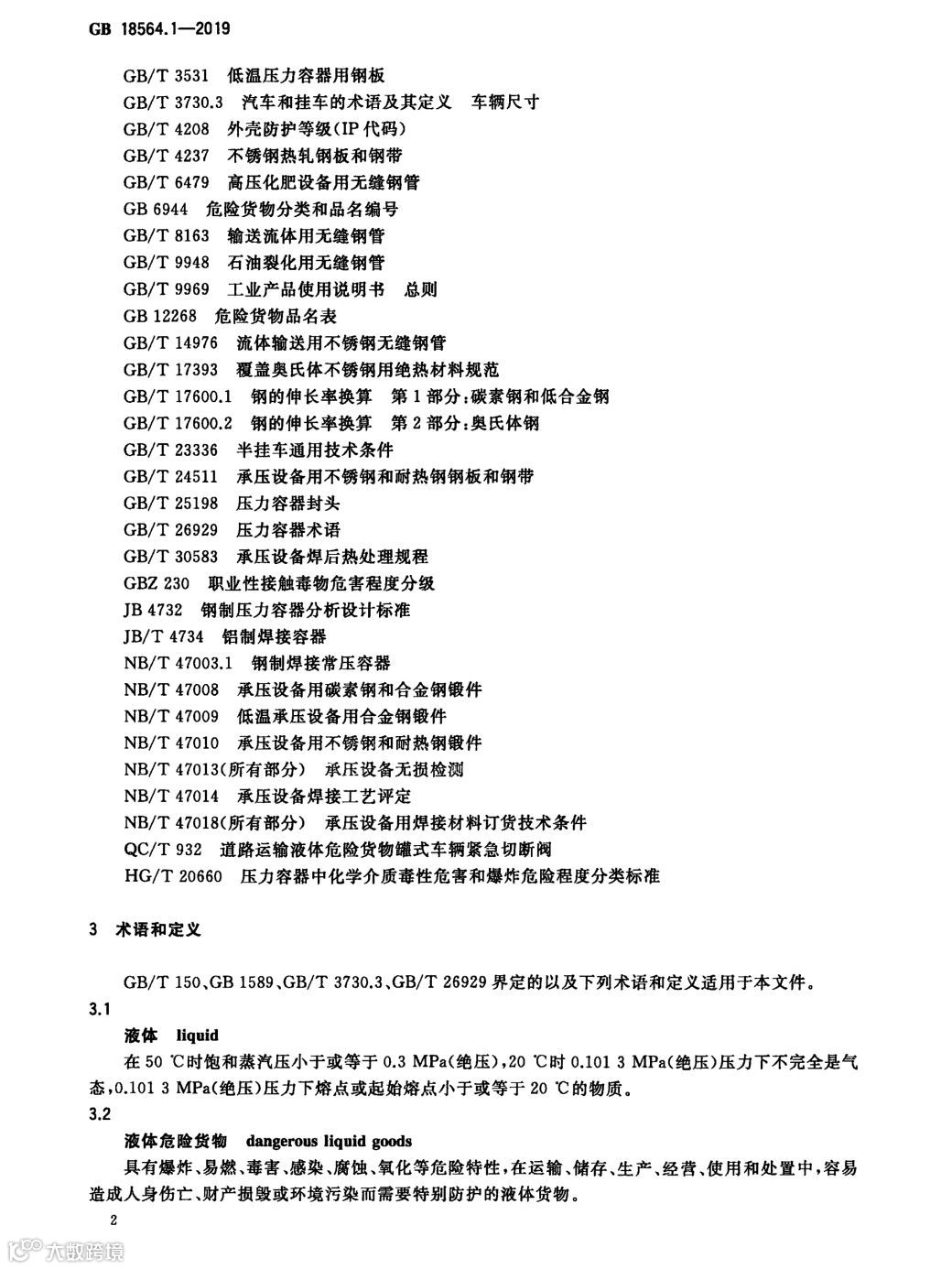 《GB18564.1-2019 道路运输液体危险货物罐式车辆第1部分:金属常压罐体技术要求》已于2019年10月14日发布,将于2020年1月1日实施。
