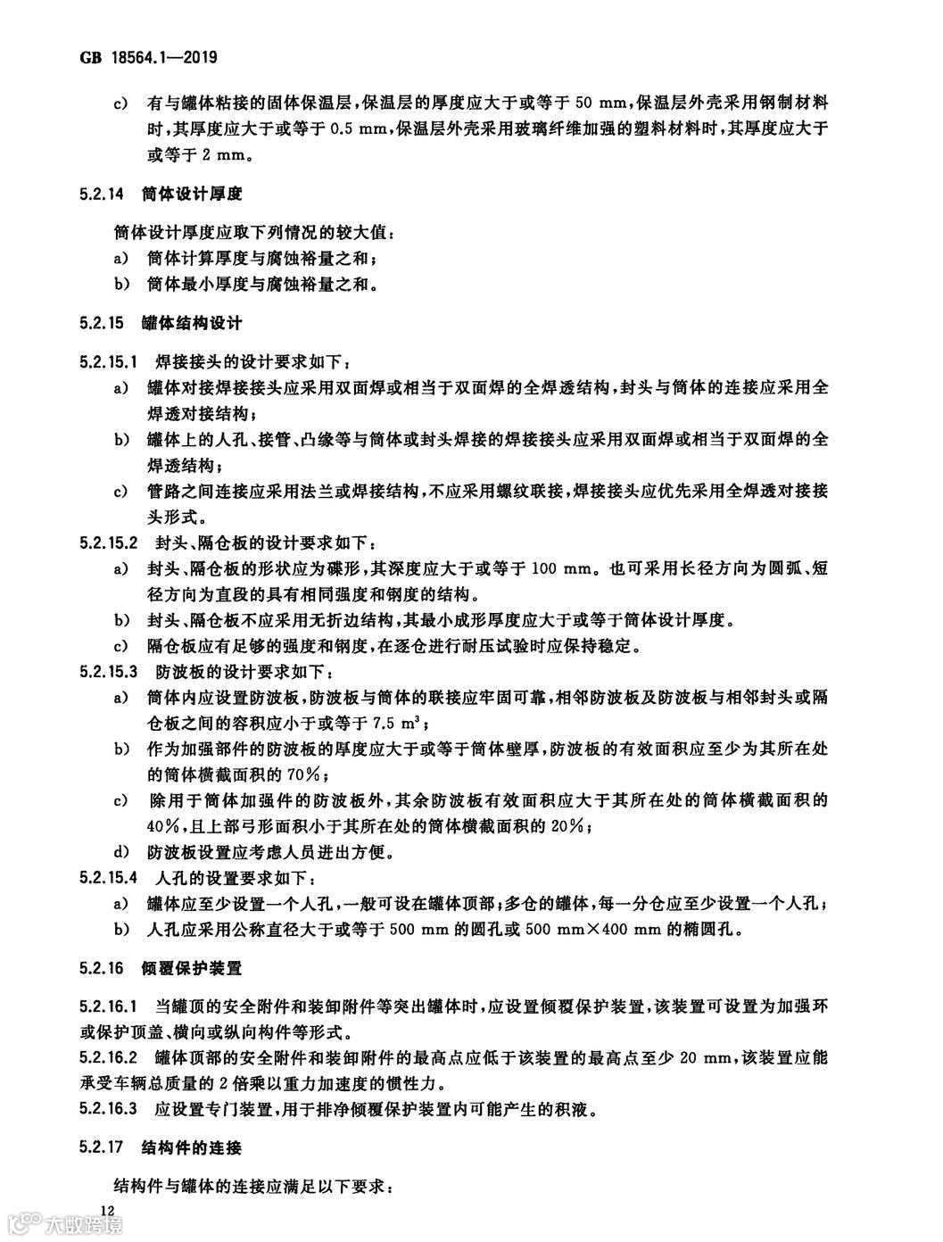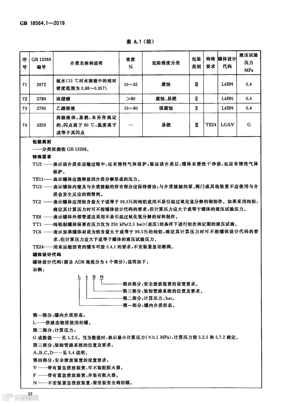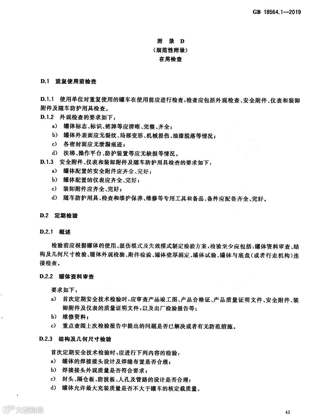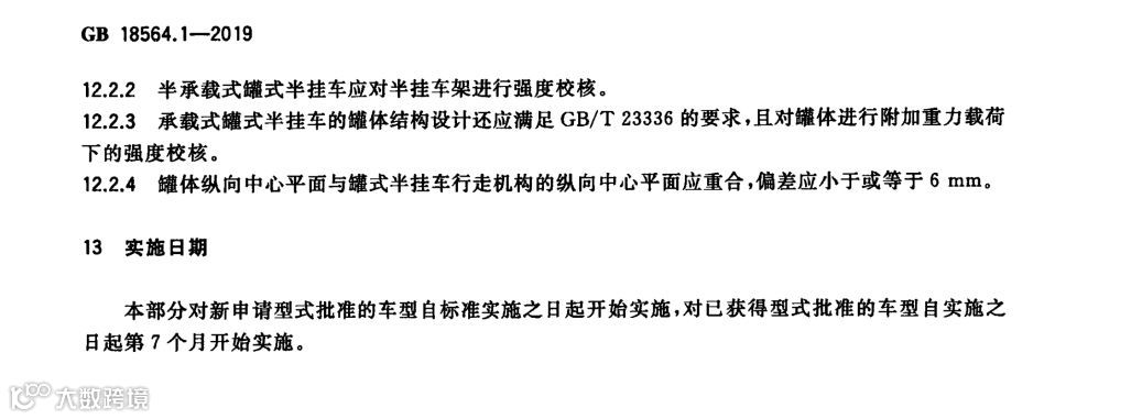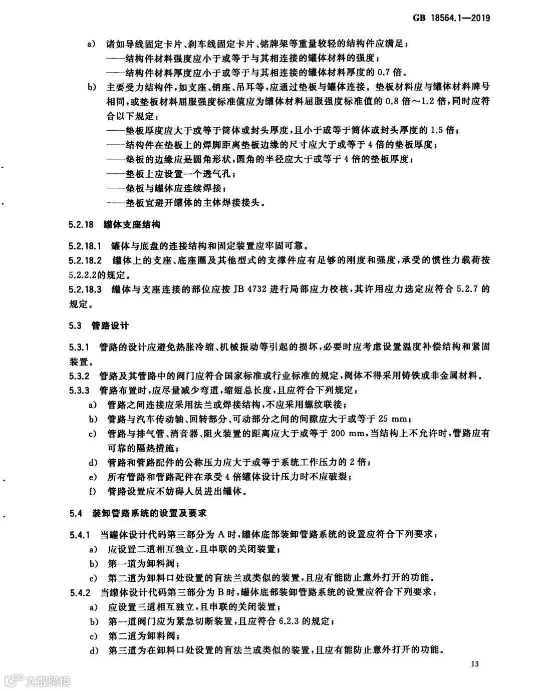 《GB18564.1-2019 道路运输液体危险货物罐式车辆第1部分:金属常压罐体技术要求》已于2019年10月14日发布,将于2020年1月1日实施。