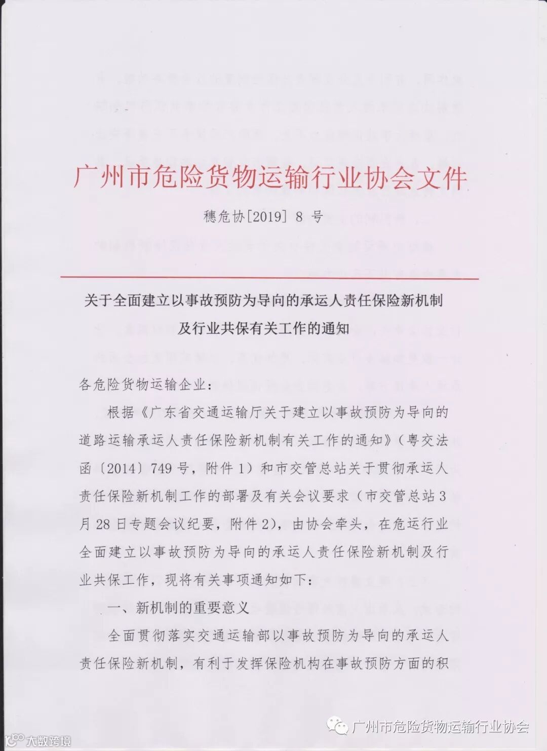 导读:关于全面建立以事故预防为导向的承运人责任保险新机制及行业共保有关工作的通知