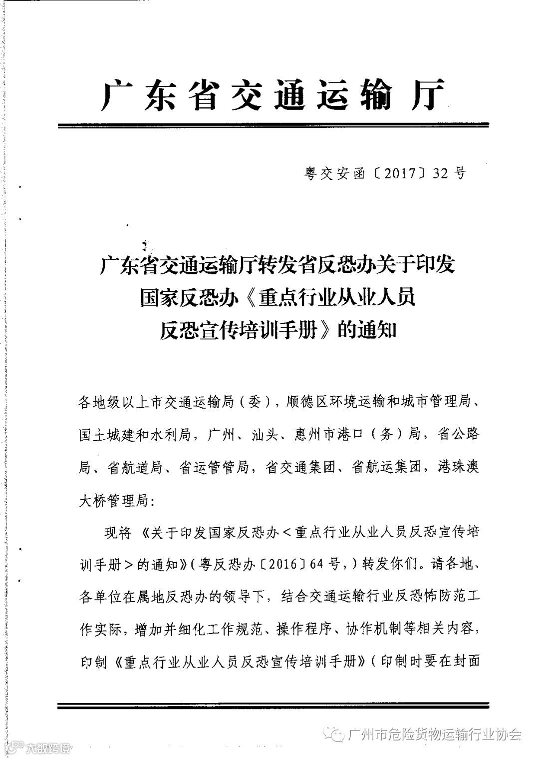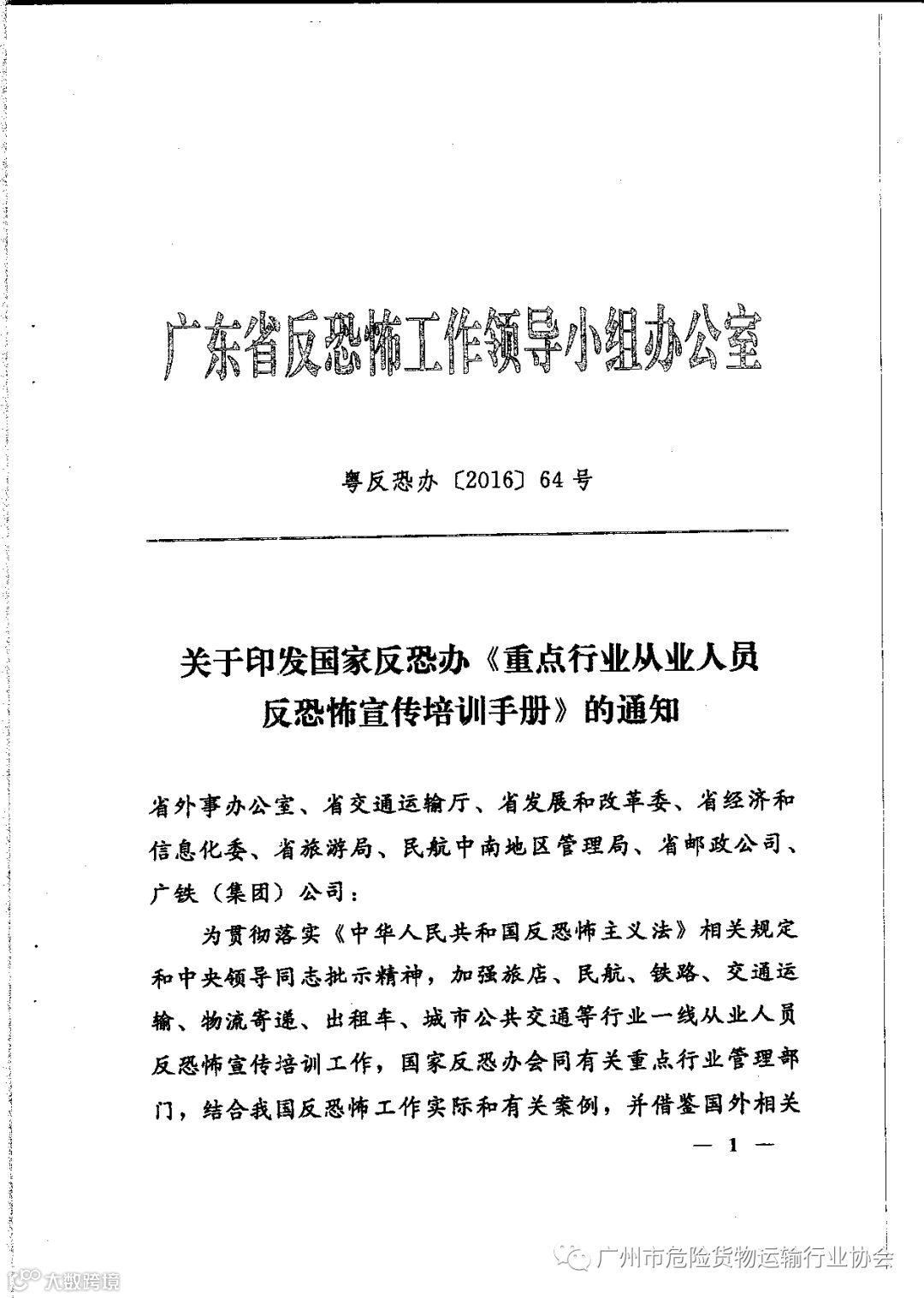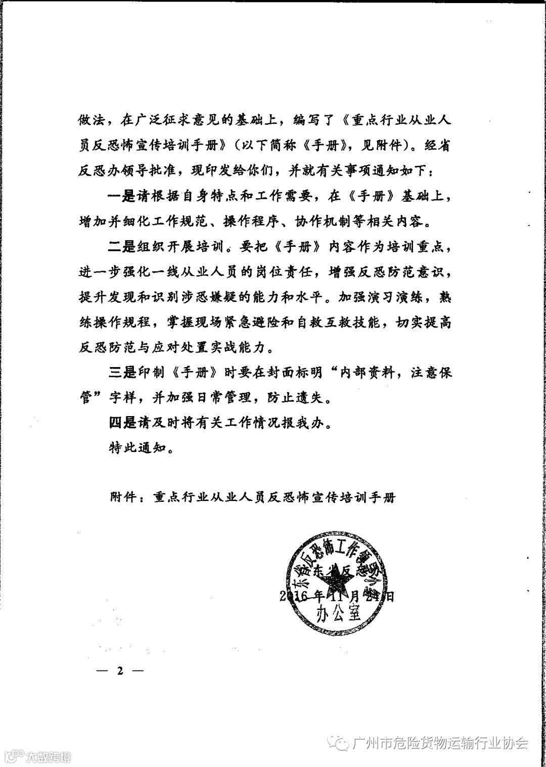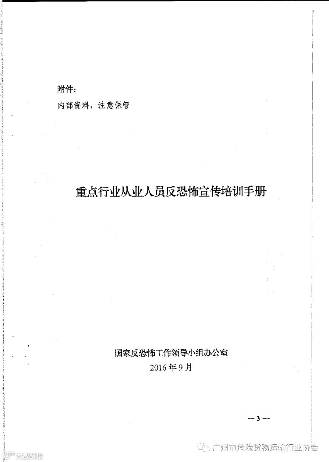 关于印发国家反恐办《重点行业从业人员反恐宣传培训手册》的通知