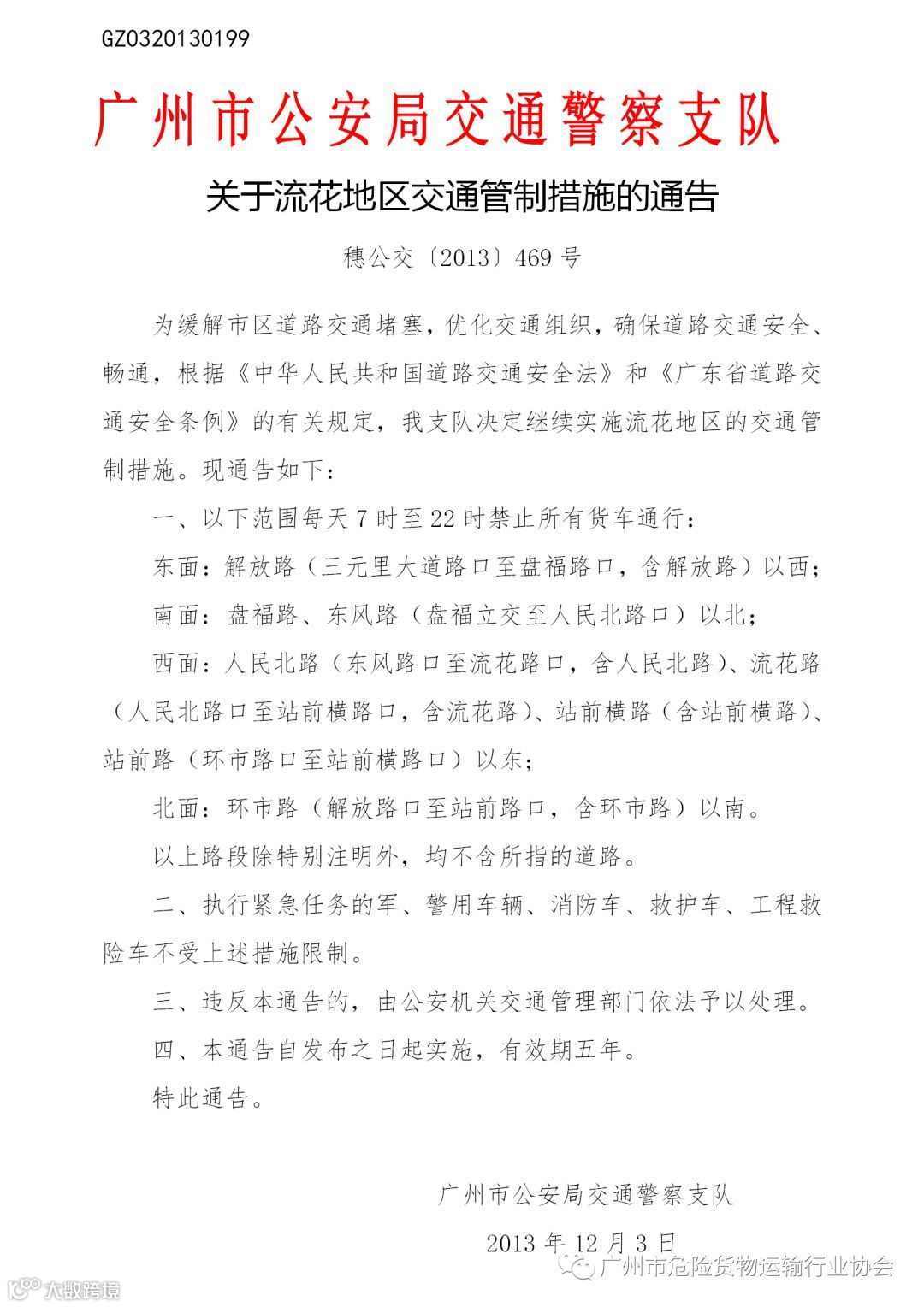 导读:广州市公安局交通警察支队关于流花地区交通管制措施的通告(穗公交〔2013〕469号)