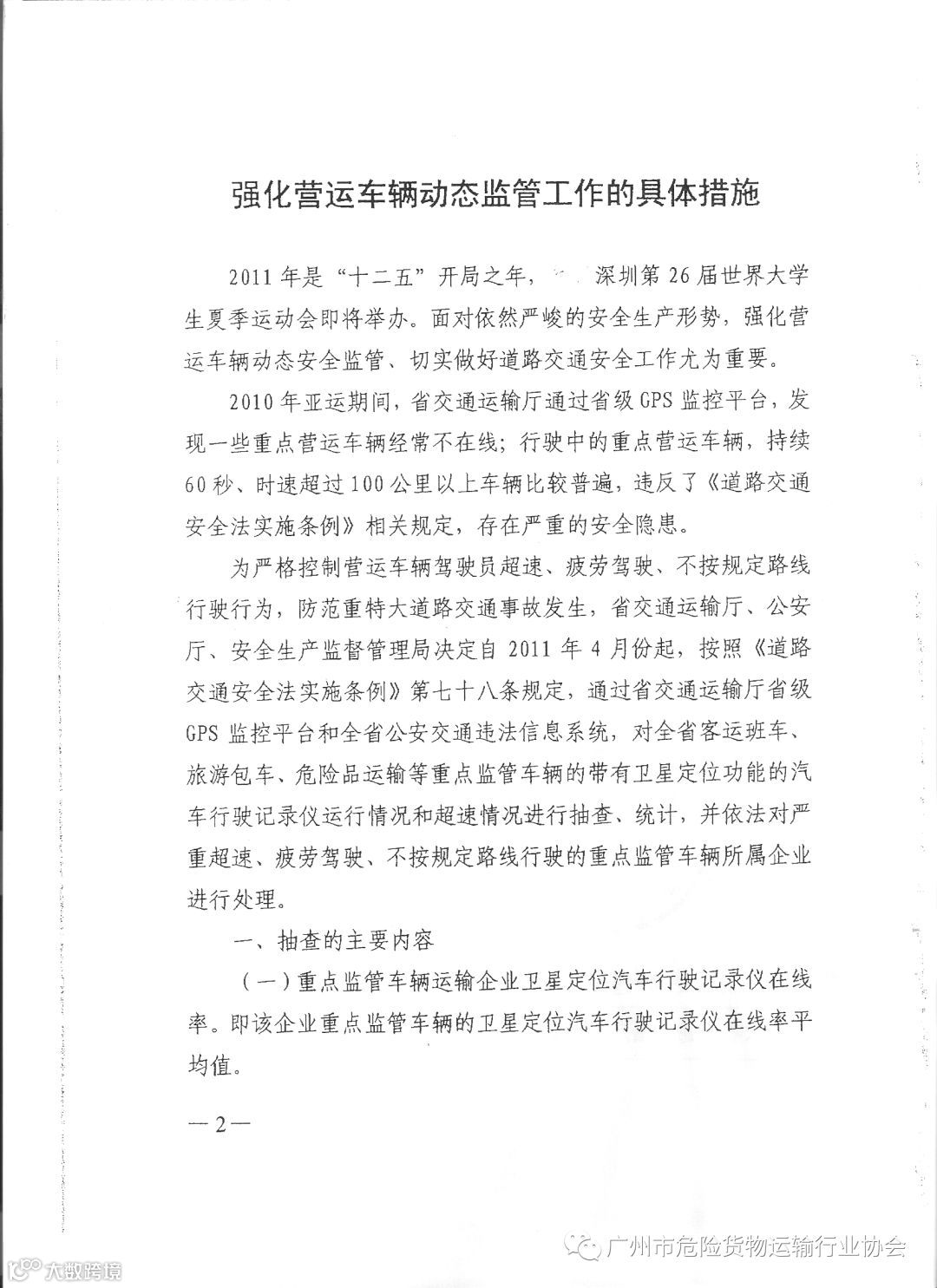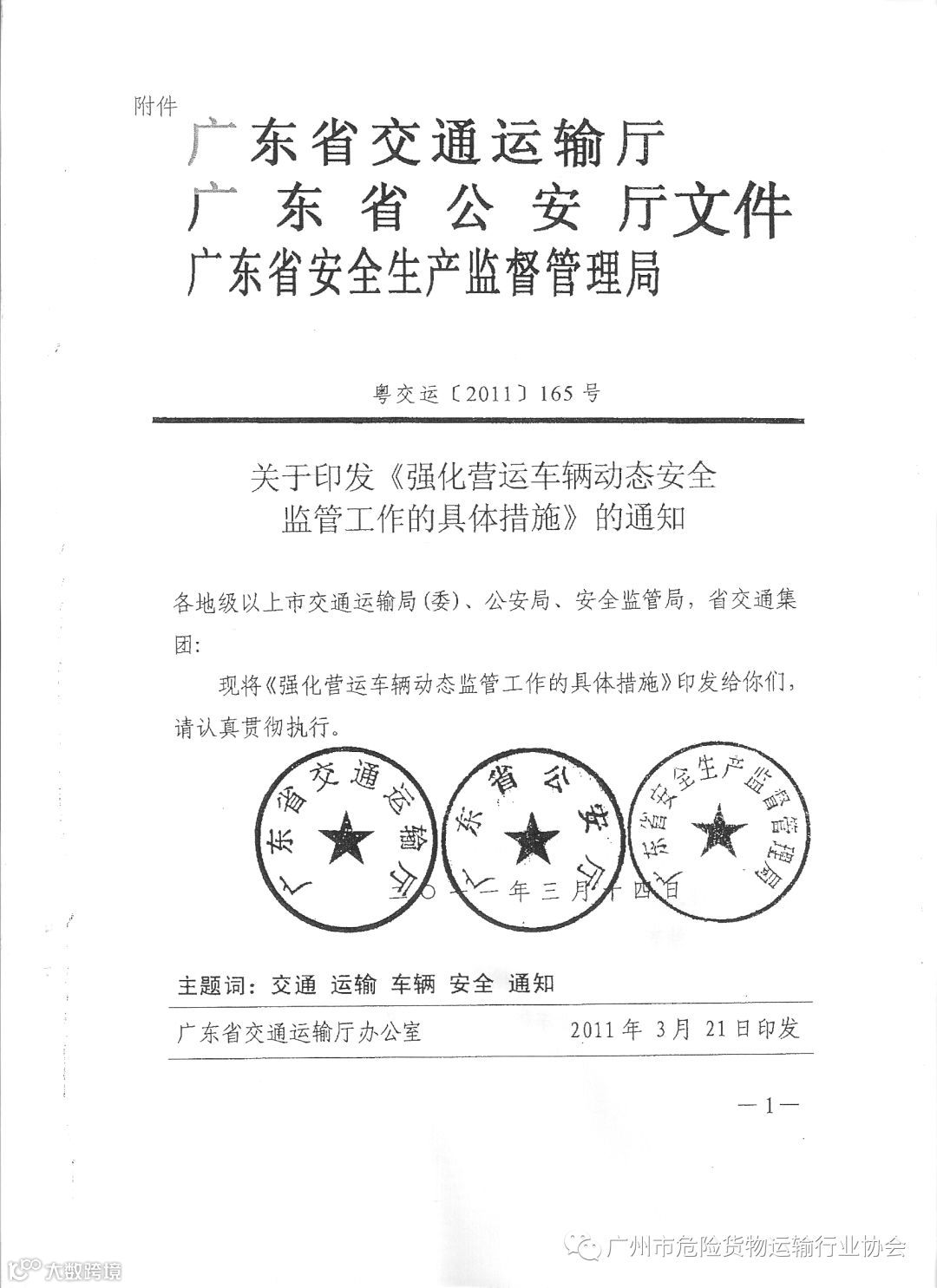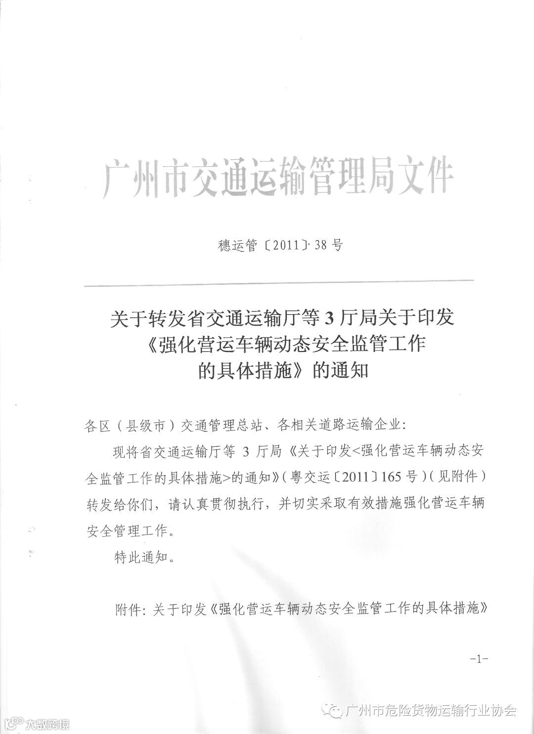 导读:关于印发《强化营运车辆动态安全监管工作的具体措施》的通知穗运管【2011】38号