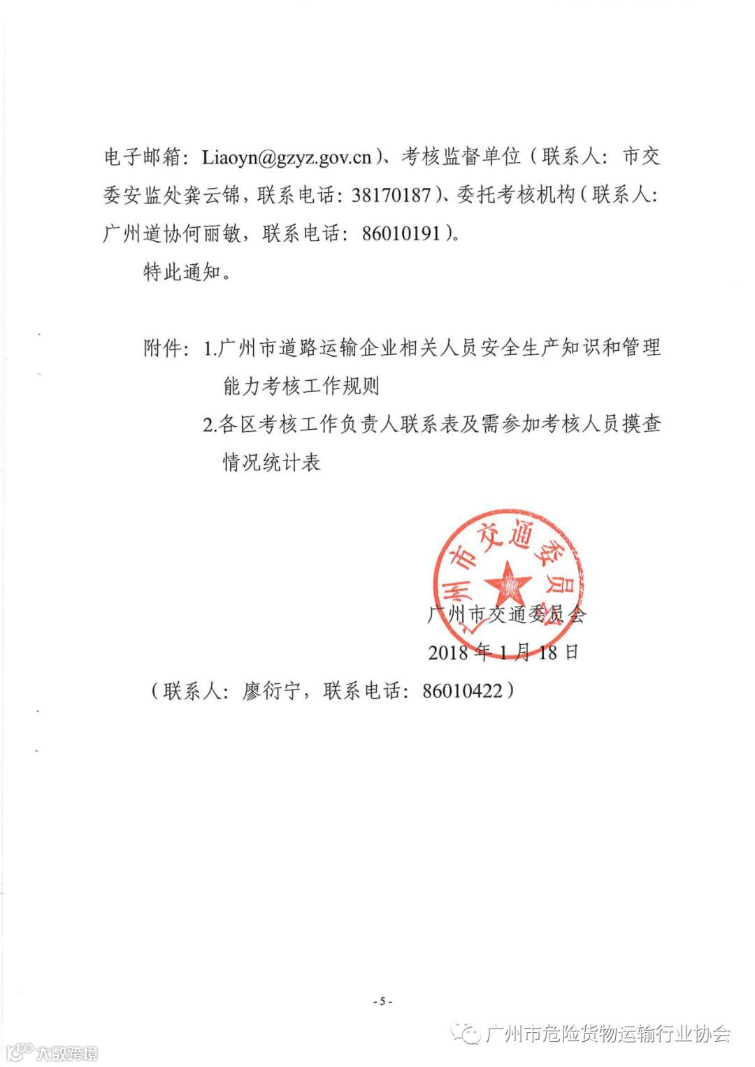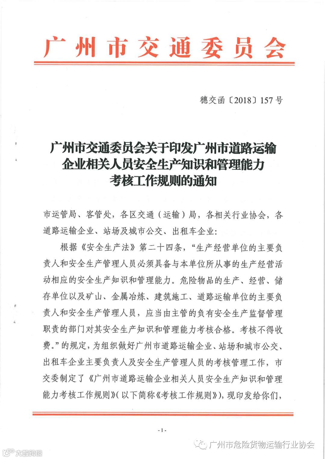 导读:关于印发广州市道路运输企业相关人员安全生产知识和管理能力考核工作规则的通知