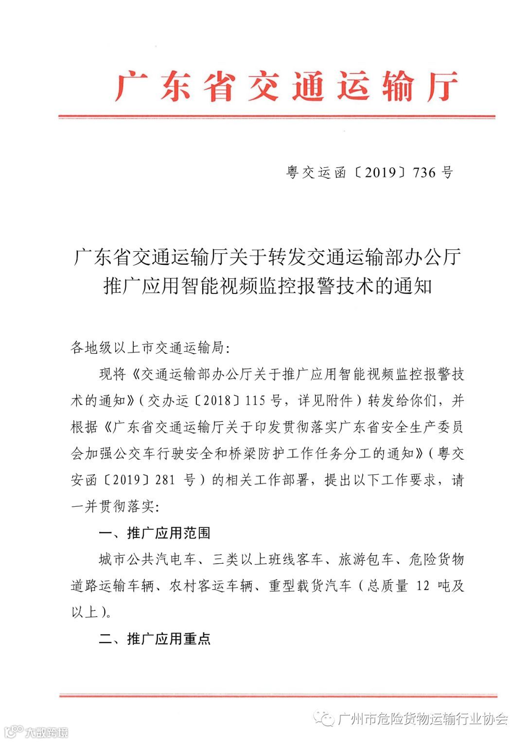 导读:关于转发交通运输部办公厅推广应用智能视频监控报警技术的通知