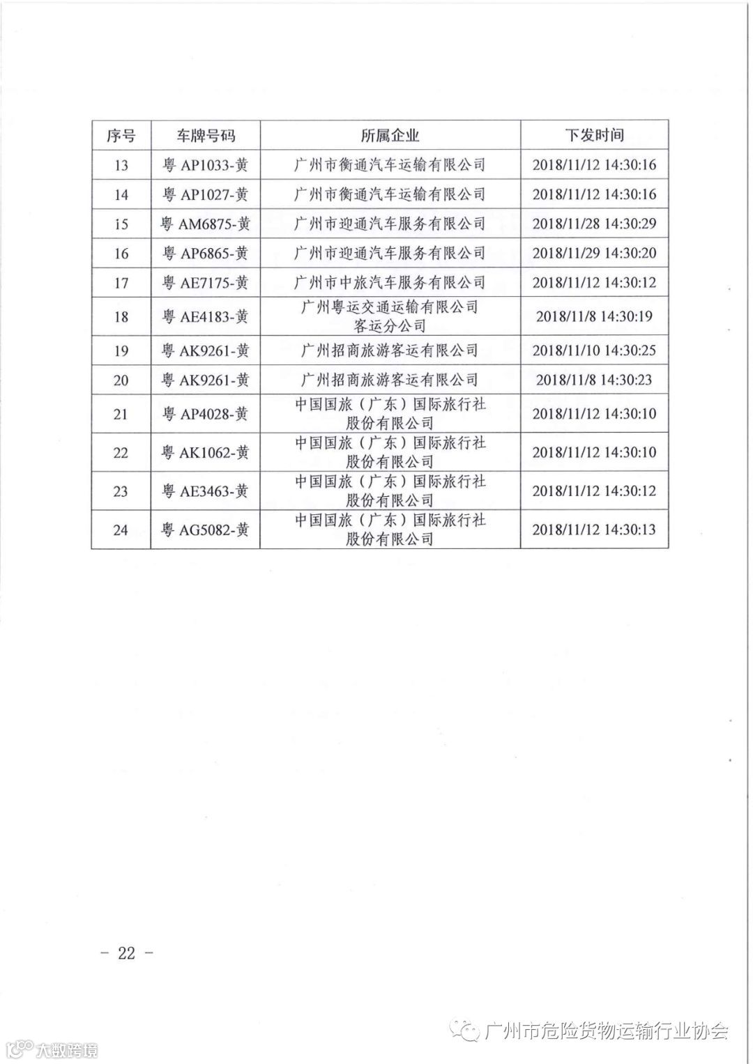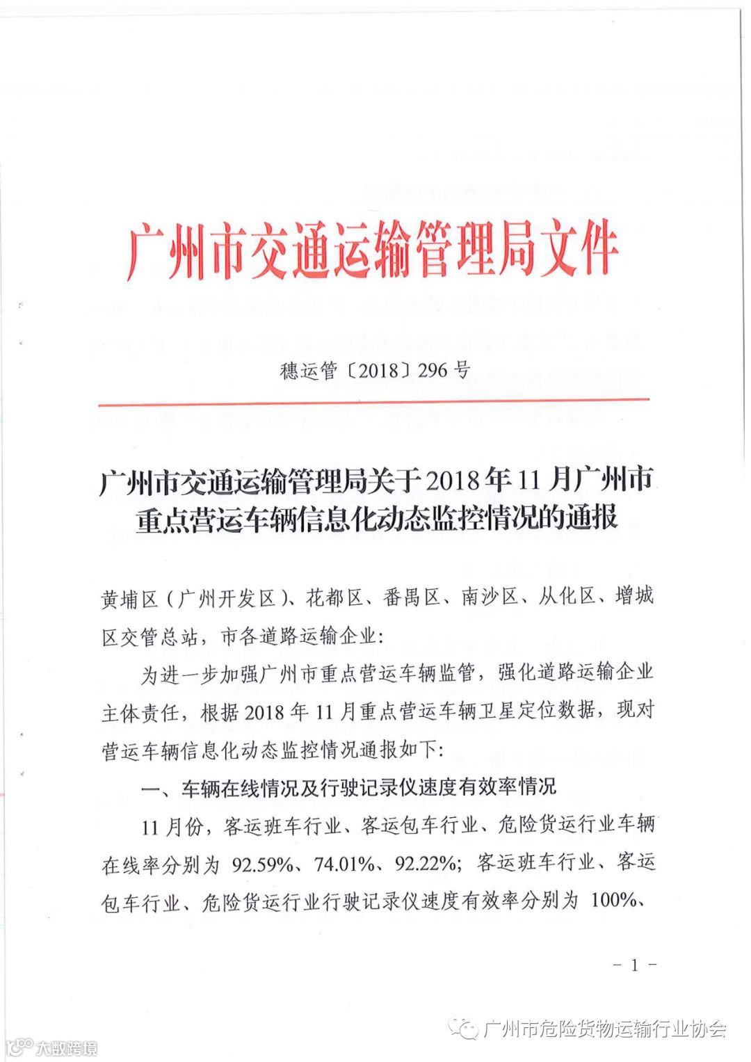 关于2018年11月广州市重点营运车辆信息化动态监控情况的通报