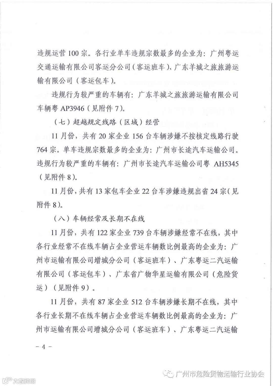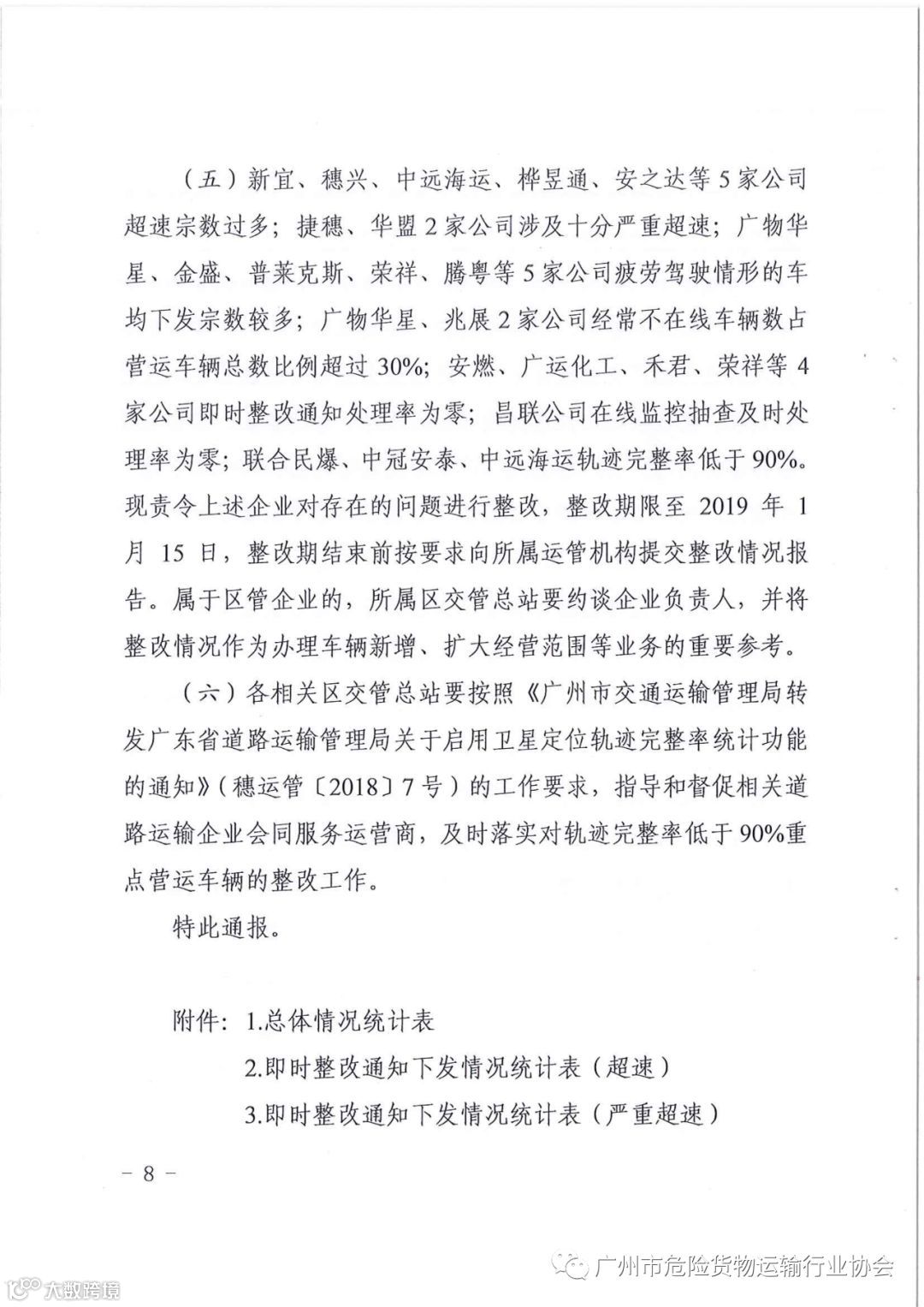导读:广州市交通运输管理局关于2018年11月广州市重点营运车辆信息化动态监控情况的通报