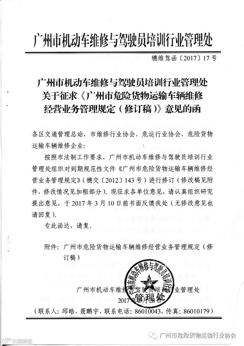 导读:关于征求《广州市危险货物运输车辆维修经营业务管理规定》