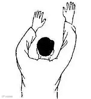 站立或仰卧,手十指交叉,放在头后部(枕部),先使两肘尽量内收,然后再尽量外展。