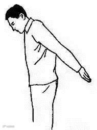 自然站立,在患侧上肢内旋并向后伸的姿势下,健侧手拉患侧手或腕部,逐步拉向健侧;另外,还可以在身体正面,用正常上肢辅助患肢抬上臂。