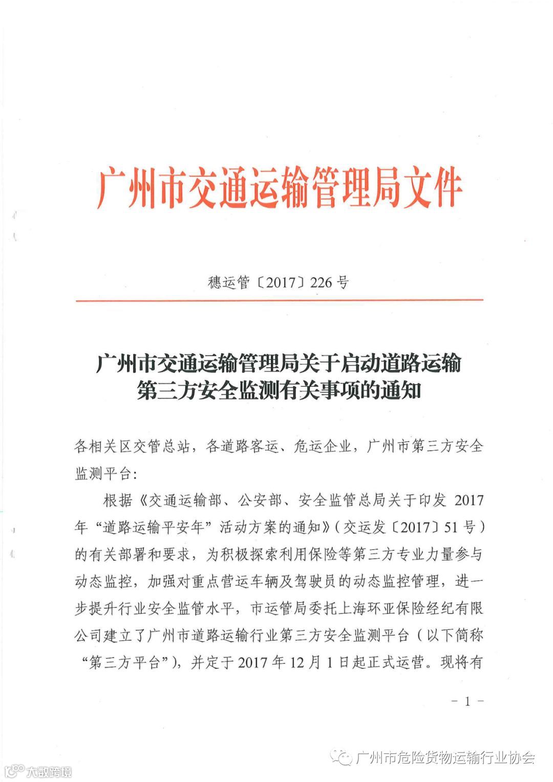 导读:关于启动道路运输第三方安全监测有关事项的通知