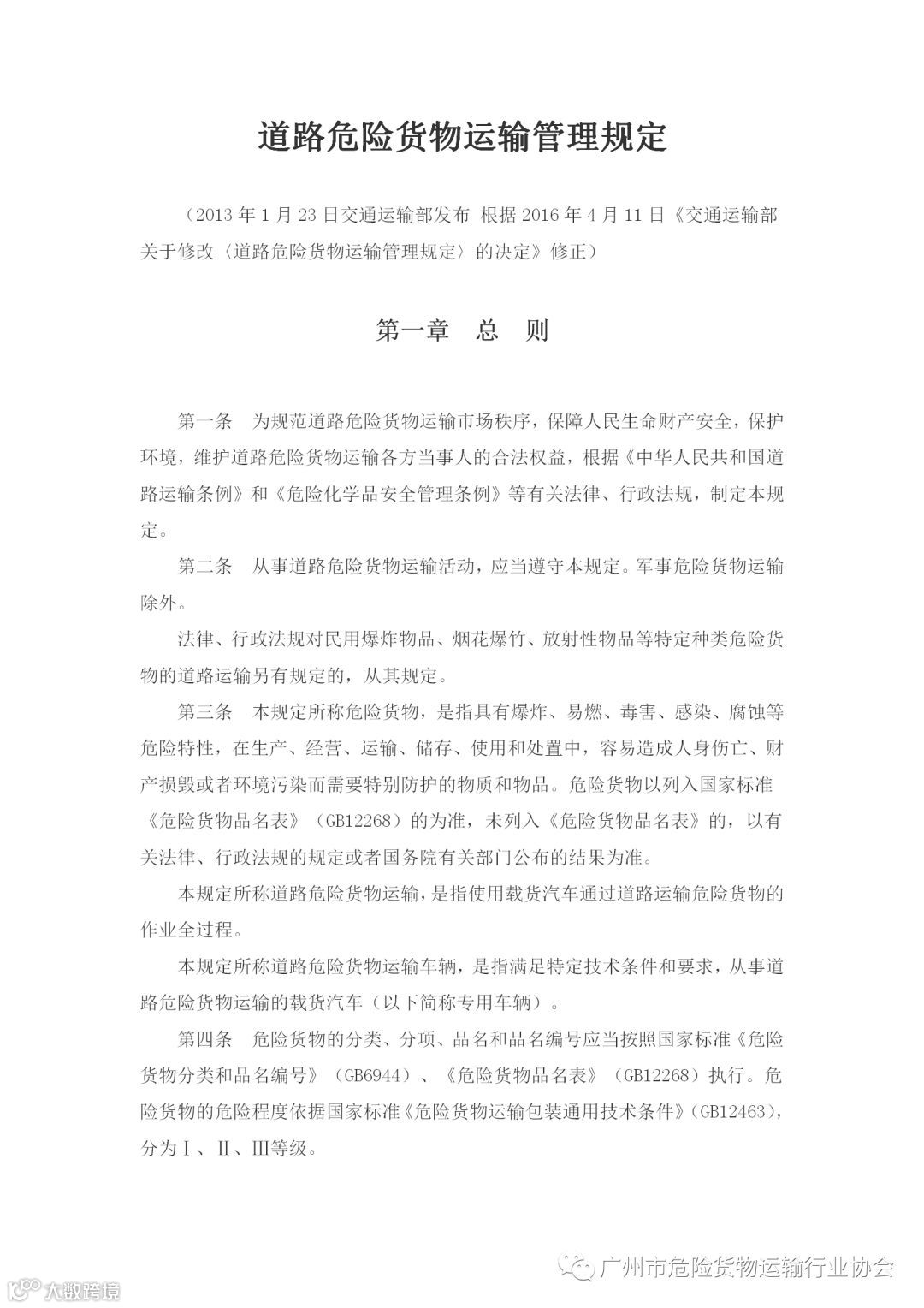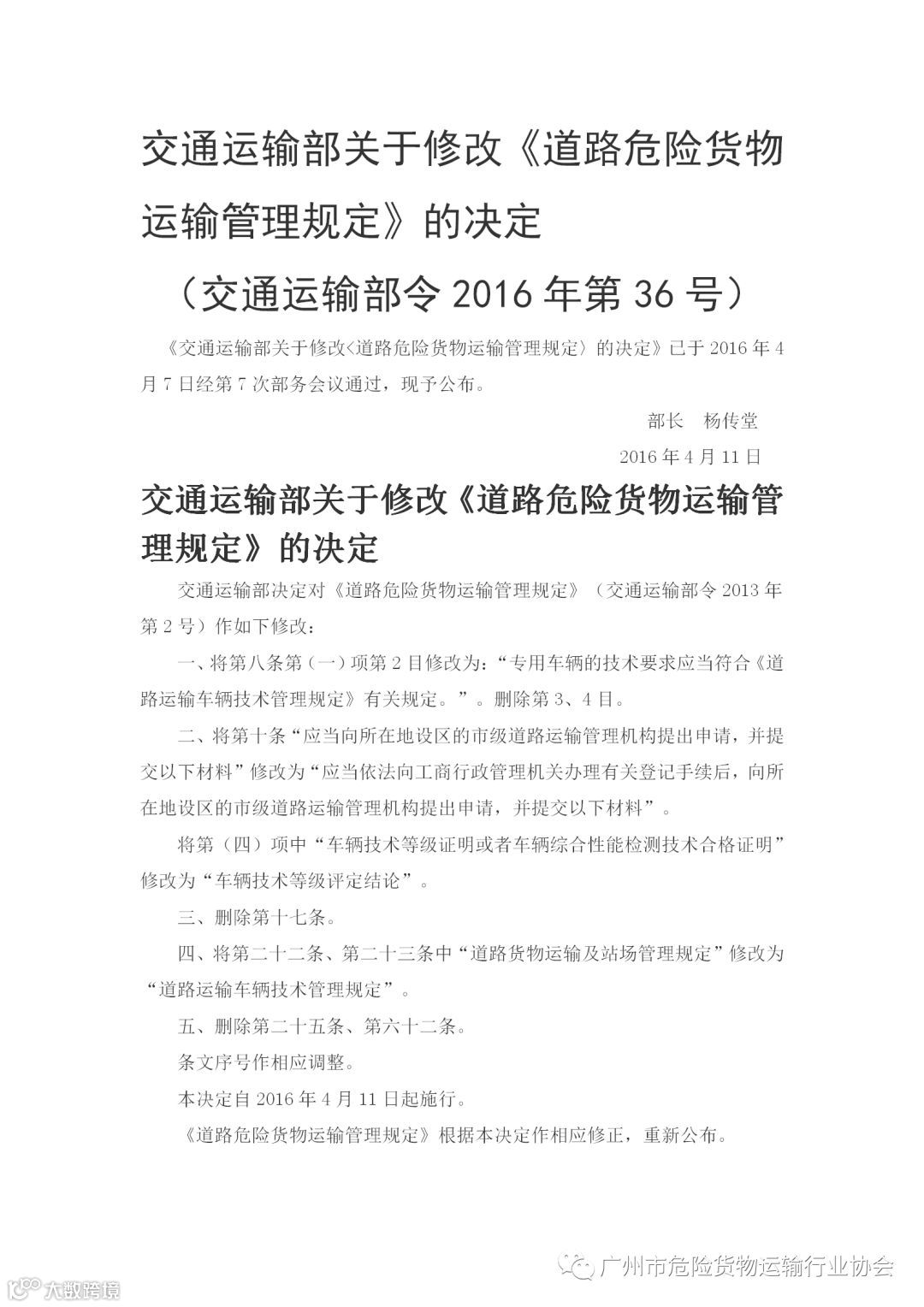 导读:关于修改《道路危险货物运输管理规定》的决定(交通运输部令2016年第36号)