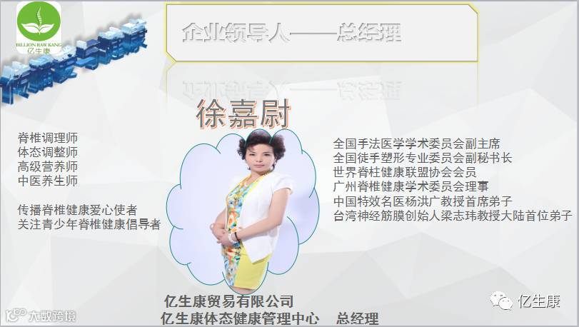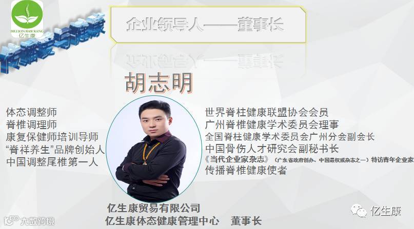 亿生康,是集教育、培训、研发、连锁加盟、项目推广为一体的脊椎健康产业公司,专心、专业、专注脊椎健康事业,传播爱与健康,欢迎有志之士一起来推动脊柱健康事业的发展,为更多深受脊柱病折磨的人们送去健康与福音!让我们共同期待《第8期亿生康脊柱调理培训班》开课!