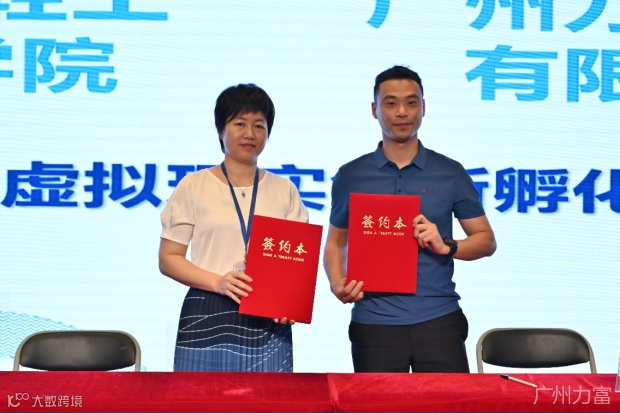 活动现场,学院与广州力富科技有限公司进行校企合作签约,共建广东省产业就业培训基地、虚拟现实创新孵化基地等,全力助力学院新一代信息技术专业群的校企合作建设和发展。