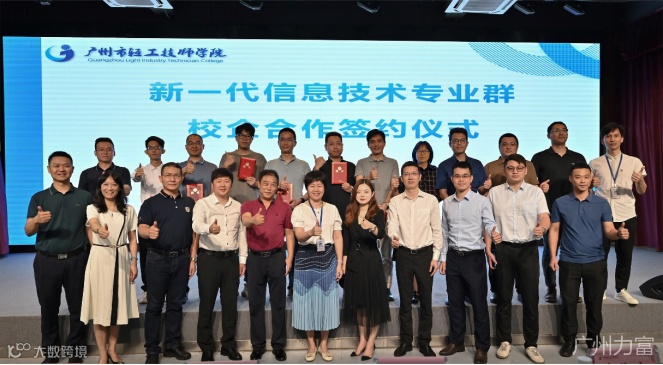 “新一代信息技术专业群校企合作签约仪式”在广州轻工技师学院北校区圆满结束。旨在培养高素质创新型高技能人才,紧密联接大湾区战略新兴产业链上下游,与新一代信息技术产业的先进企业达成合作意向,对接广东省20个战略性新兴产业集群之一的软件与信息服务产业,共建“信软产业学院”。