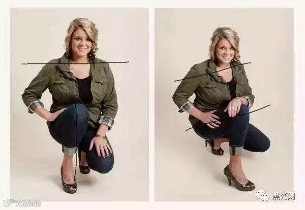蹲的时候也不要正前蹲,稍微侧身,挡住大象腿。