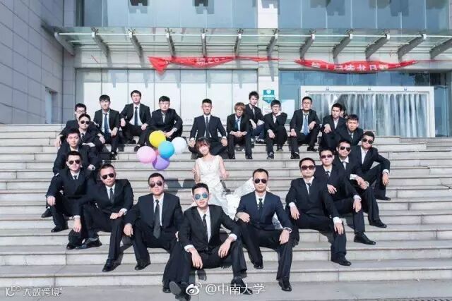 中南大学土木工程1315班的同学们刚刚完成了他们班的毕业照拍摄。这不是一个普通的班级,因为全班27位同学中只有1位女生。