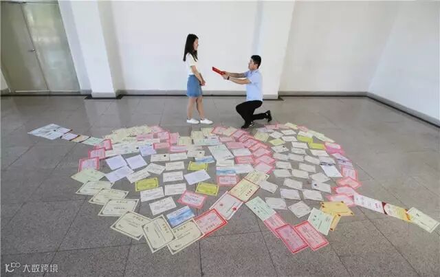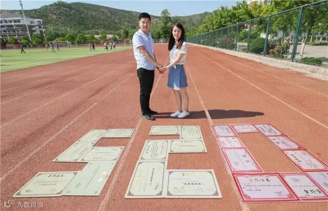 在5月20那天,安徽淮北师范大学的大四情侣李华锡和张俊所拍的毕业照有点特殊。他们用大学四年所获得的137张各种类型的证书,摆成了不同的图形,纪念四年美好的大学时光。