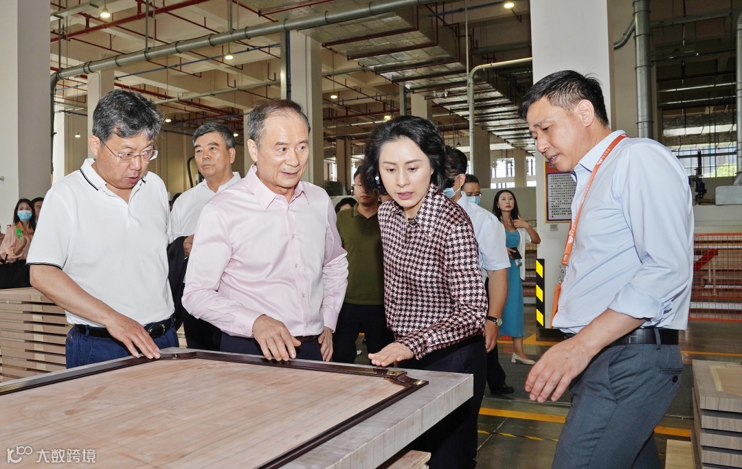 ▲中国光彩会相关领导嘉宾参观煜丰实业大家居智能制造生产基地
