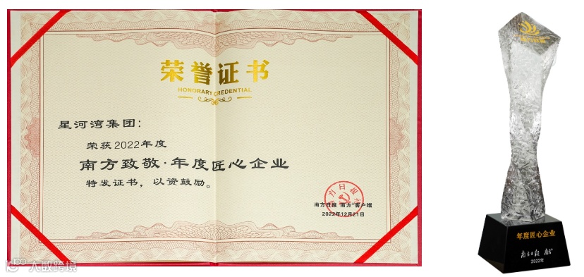 近日,由广东省工业和信息化厅、南方报业传媒集团共同指导,南方日报主办的“向新向未来——2022南方致敬”年度活动如约而至,并发布2022南方致敬企业榜单。星河湾荣获年度匠心企业奖项。