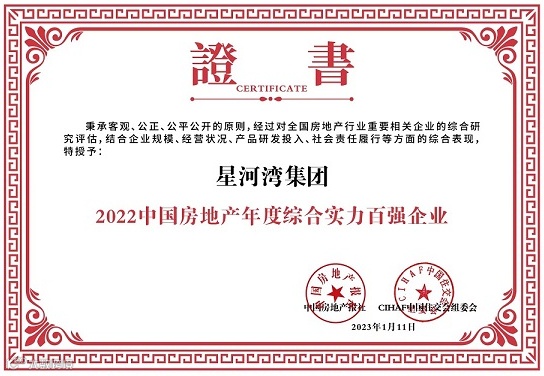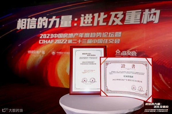近日,“2023中国房地产年度趋势论坛暨CIHAF第二十三届中国住交会”在北京举办。活动旨在探讨新发展格局下房地产行业高质量发展之道及行业发展新模式。星河湾集团入列“2022中国房地产年度综合实力百强企业”。