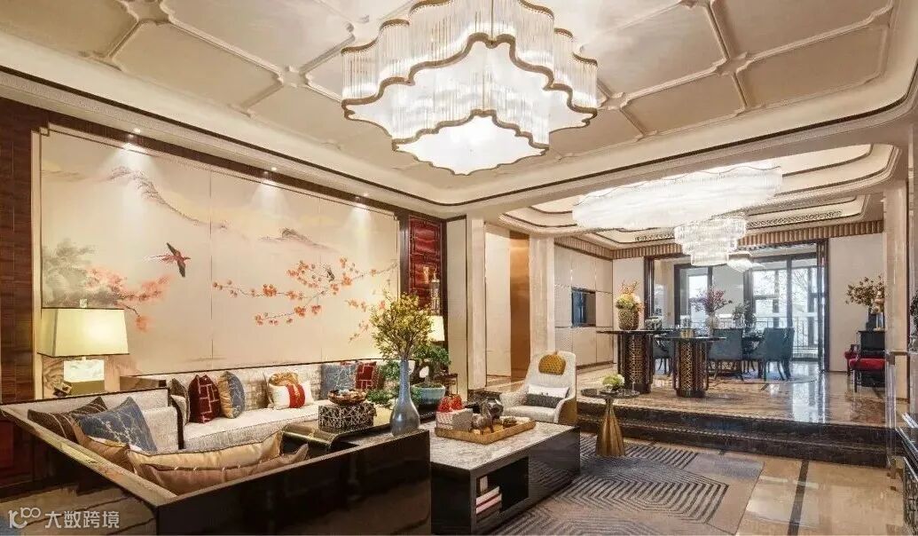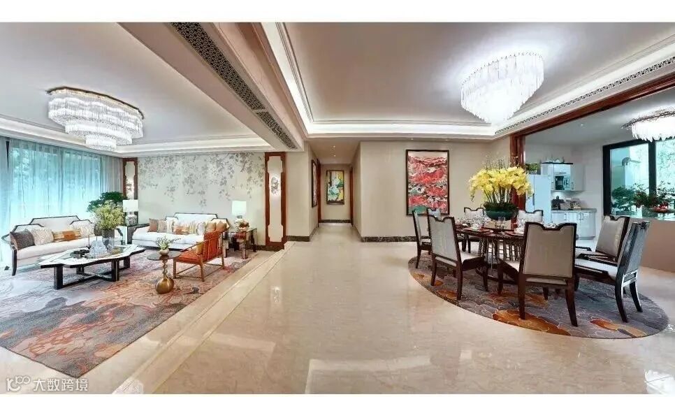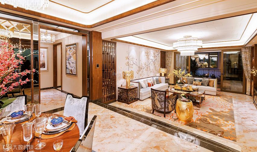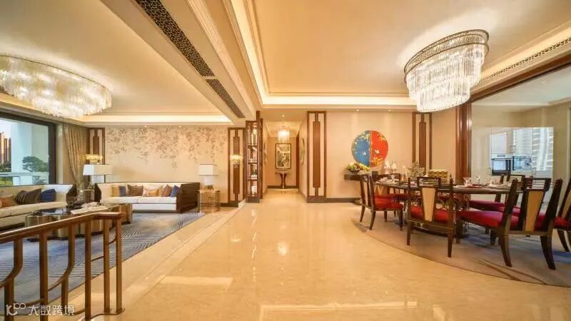 同时采用独有的工艺,例如水刀切割、玉石拼花、回字纹装饰……为了保持高水准效果,每一道工艺的背后,都有着十年以上老匠人尽力打磨。从设计创新、工艺创新、材料创新等多维度,都让整个居住空间宛如艺术杰作,彰显美学韵味。