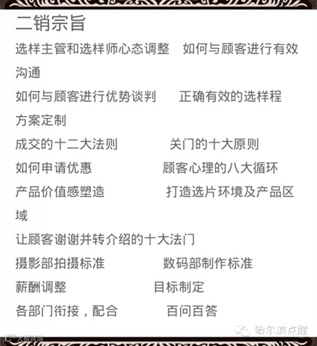 谈到这儿呢,我给大家给各位老总说一下。选样师底片全送之后都不愿意选照片了,第一是业绩做不上去,第二没有方法,没有流程,没有方案,不知道怎么选?然后这里边还有一个重要的原因就是薪酬的调整;