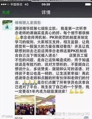6、天津品爱摄影集团高总,学完《演说精华班》课程后,2月份在当地举办了一场50家商业合作联盟会,通过演讲成功吸纳了50家客户资源,收取单量达200单!