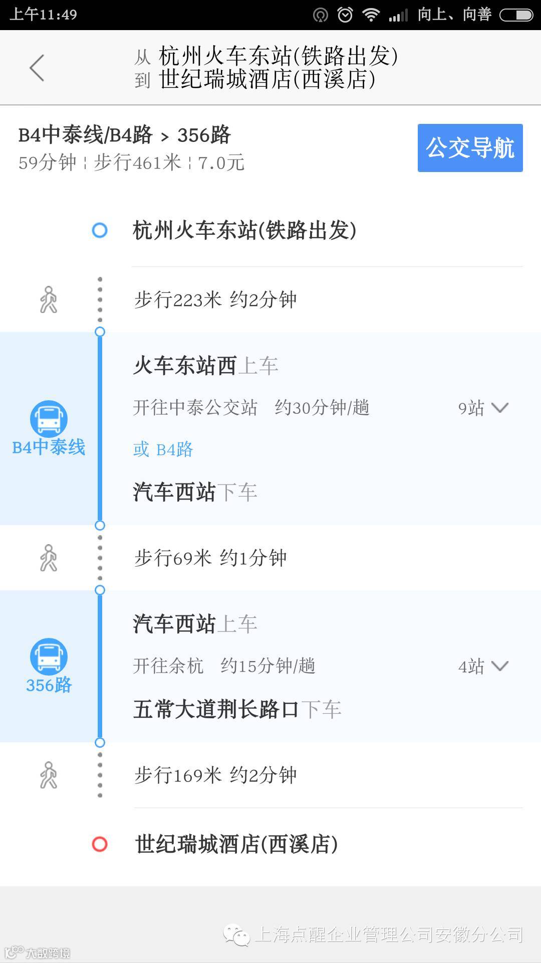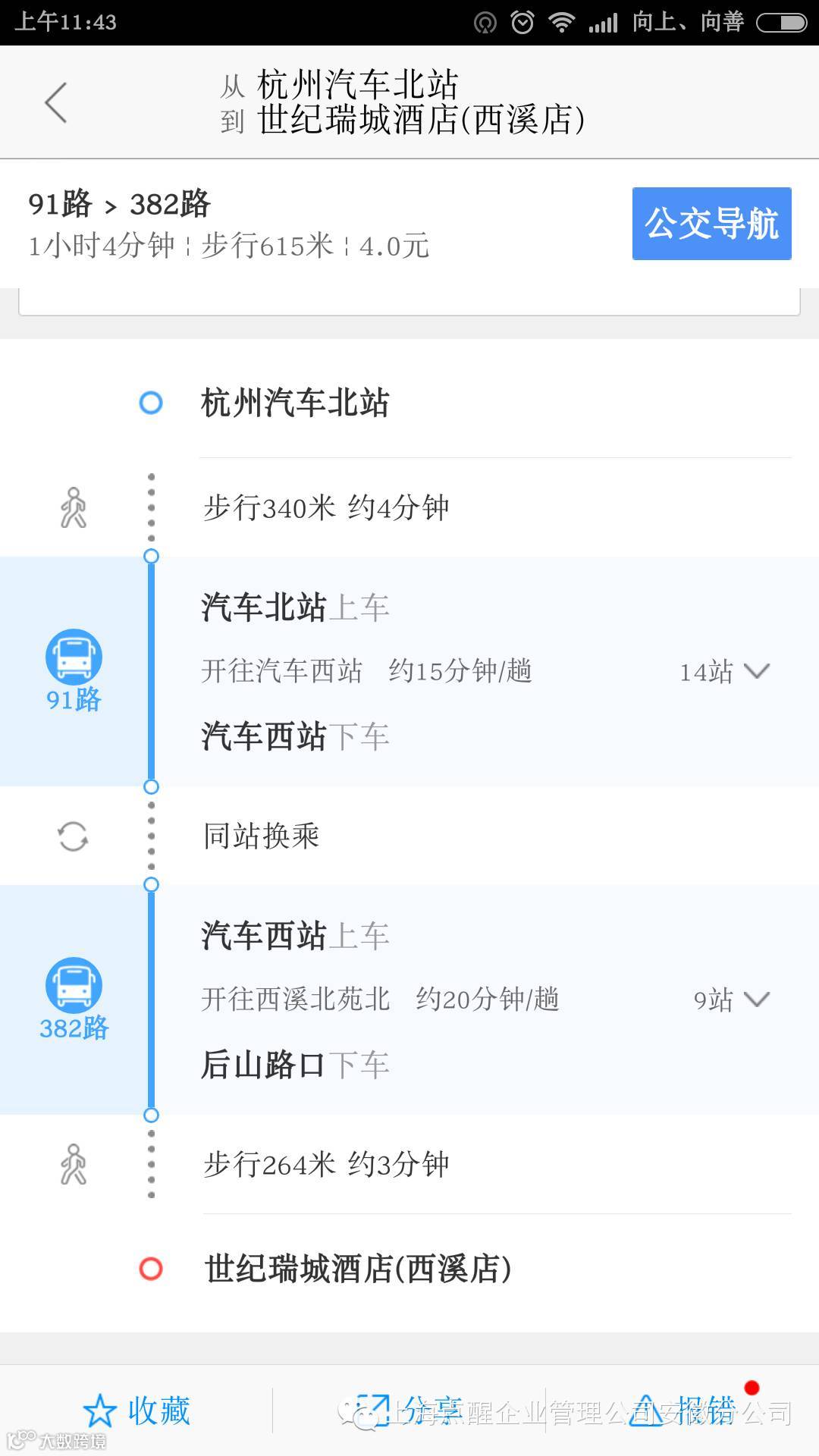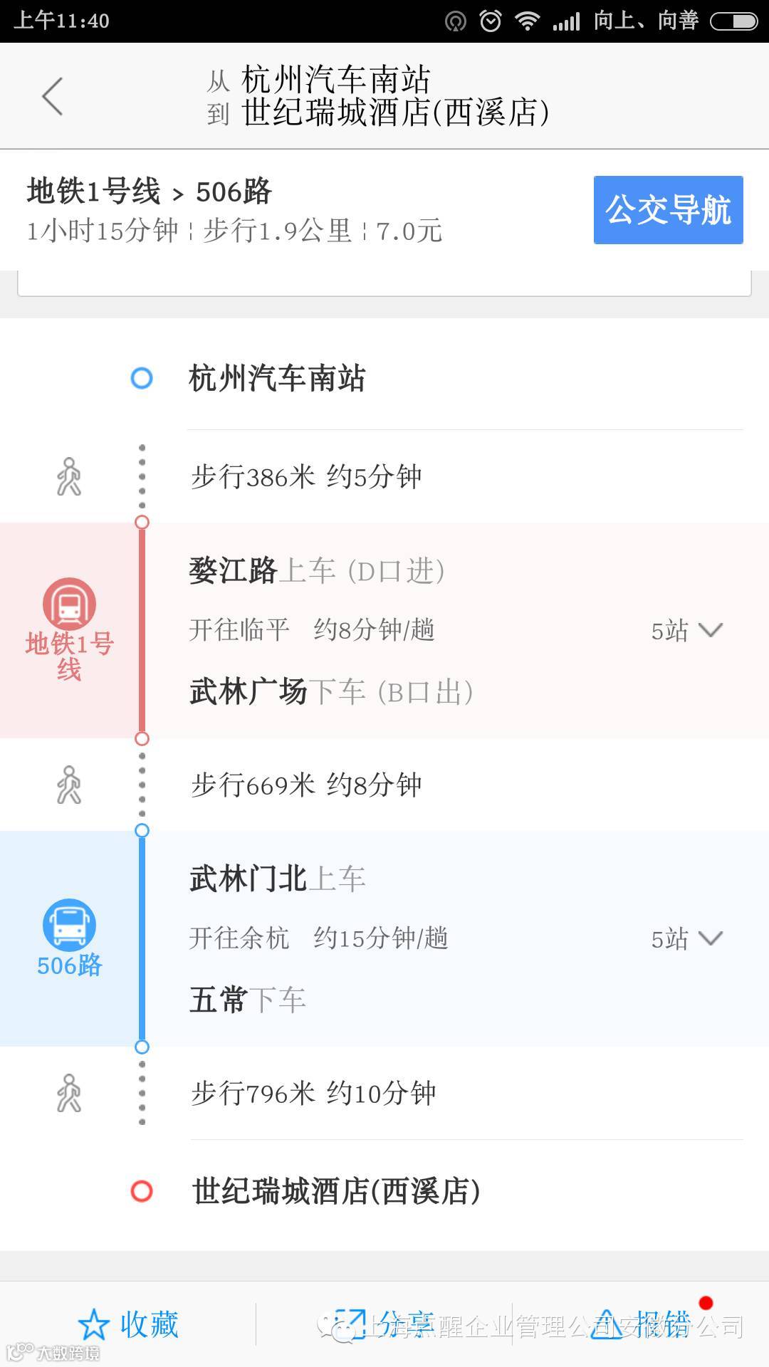 下面是杭州汽车站到开课酒店路线图: