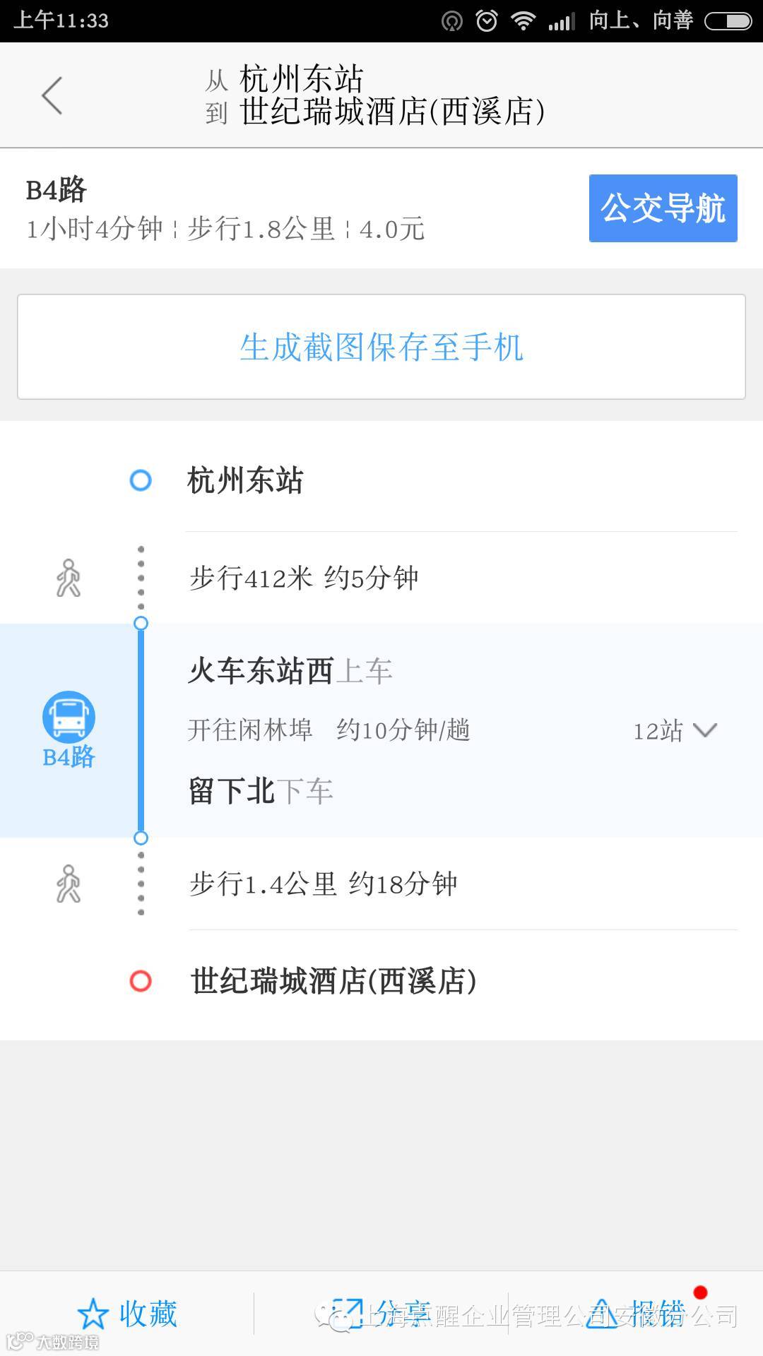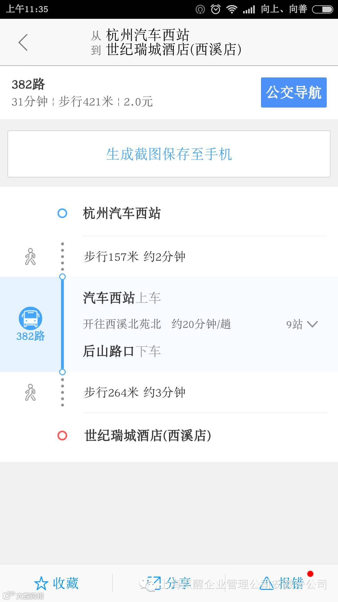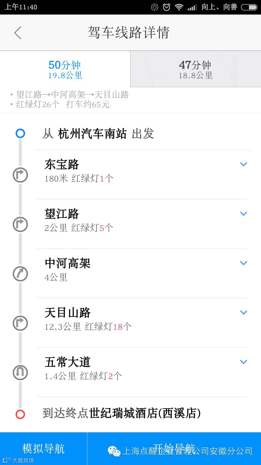 下面是杭州汽车站到开课酒店路线图: