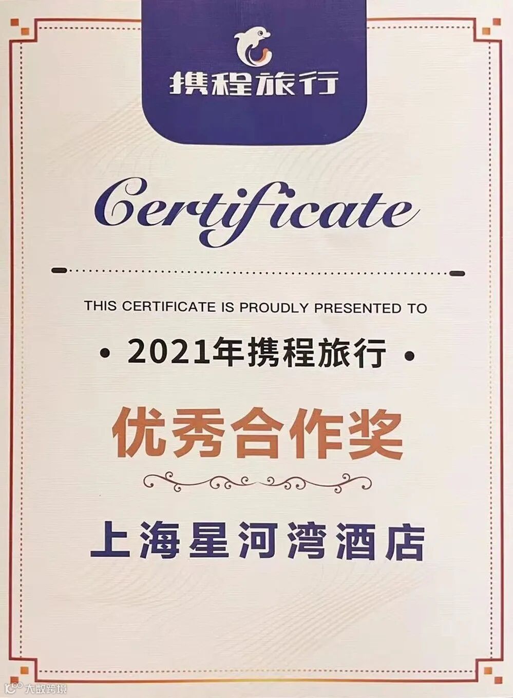 荣获“2021携程集团全球战略合作伙伴峰会优秀合作奖”