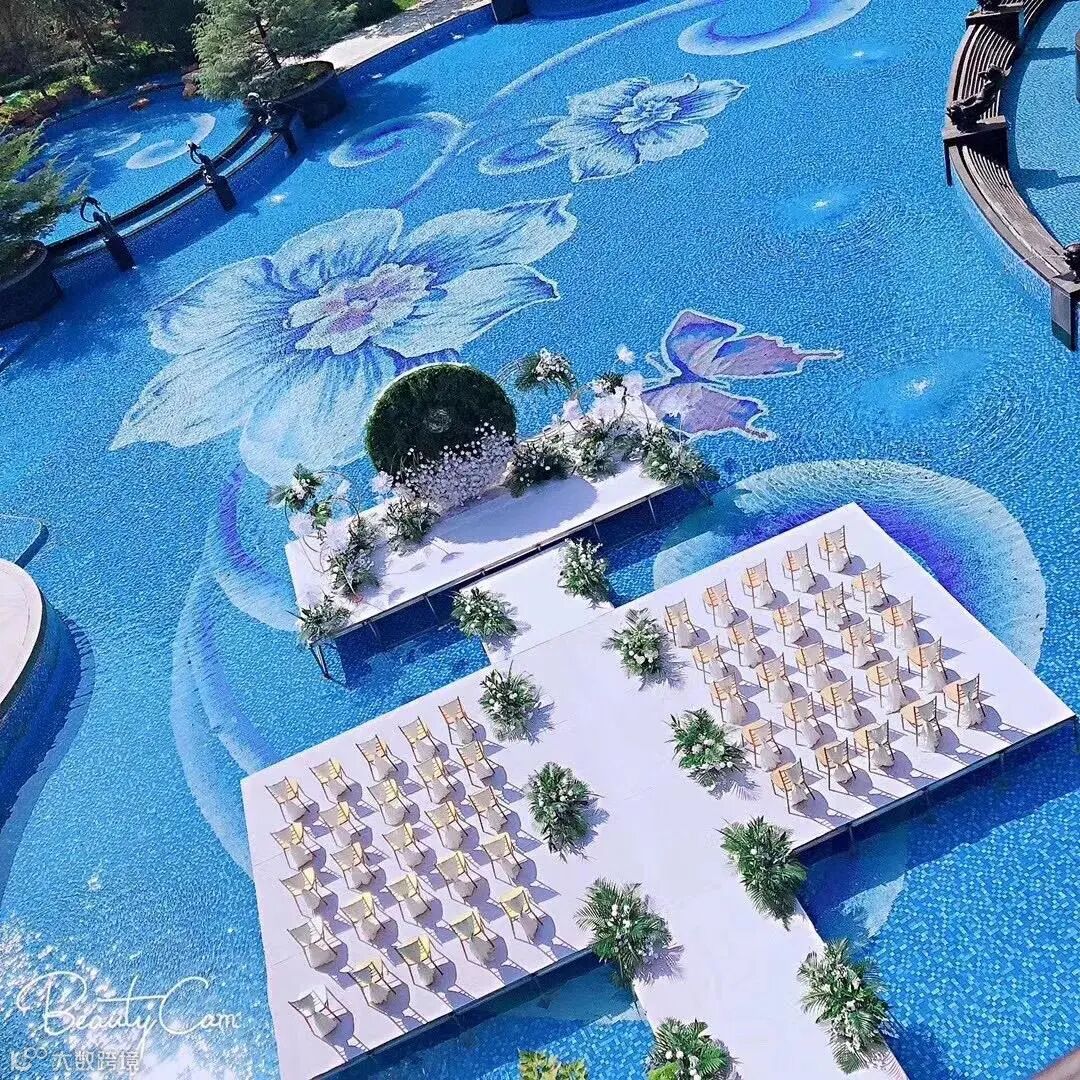 华贵典雅的泳池拼花,晶莹剔透的水晶舞台,是每一对新人,举办一场城中独一无二婚礼的浪漫之选。