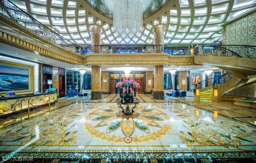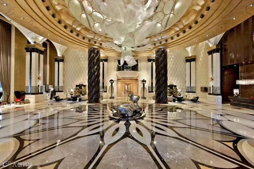 以多种珍贵大理石材以及星河湾定制水晶马赛克,加以复杂的拼接工艺,精心打磨,令大堂地面具有超强的视觉和心理震撼力。