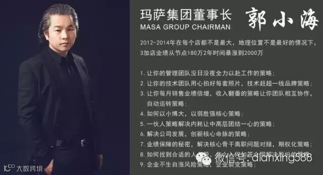 好期待,好激动哦!借用网络语:What are you 弄啥呢?安徽玛萨集团年产值7000万在《总裁核心圈》为你分解他通晓人,通晓事后背后如何运营5家店的产品营销框架!