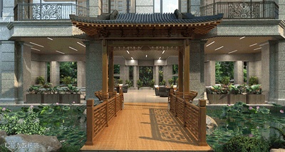 自然生态的水石庭院里,清风拂柳,流水潺潺。在古色古香的凉亭里,赏景品茶,享受惬意生活。