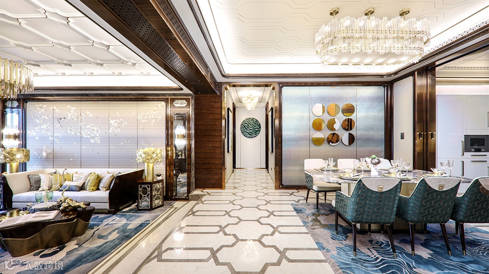 室内装潢更显匠心,臻选的各类石材、木料,经星河湾工艺打磨,诞生出一幅幅精美绝伦的拼花作品。祥云流纹,勾勒家园美满,回字纹玫瑰金穹顶,华贵柔和,让人心情无比舒朗。